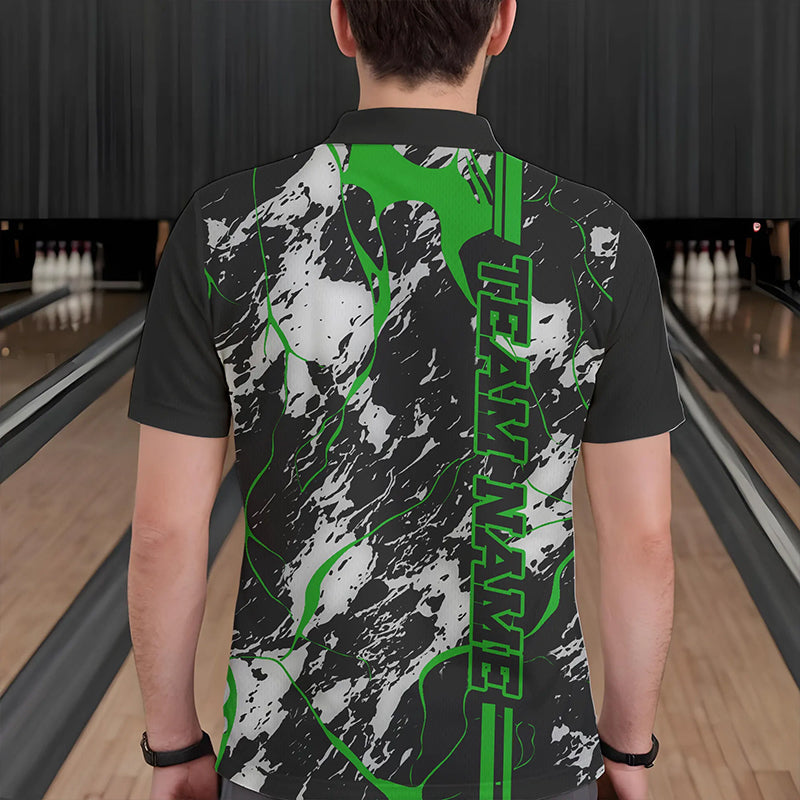 Custom Gray And Green Strike Bowling Polo Shirts For Men, Bowling League Team Uniform IPHW8862