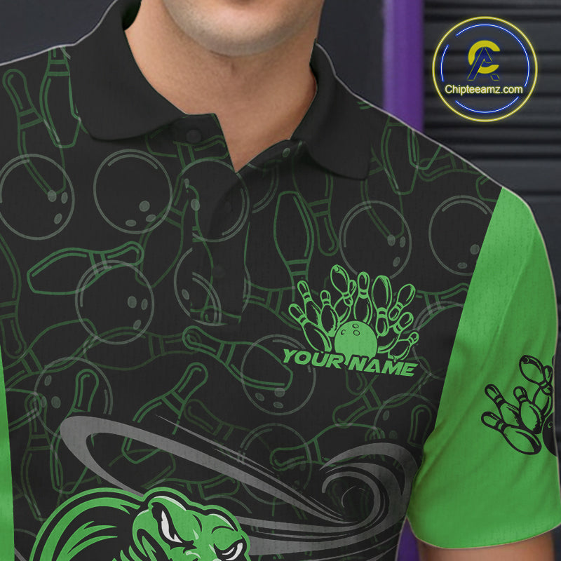 Custom Green Cobra Snake Bowling Team Men Polo Shirts, Bowling Pattern Shirt IPHW9704