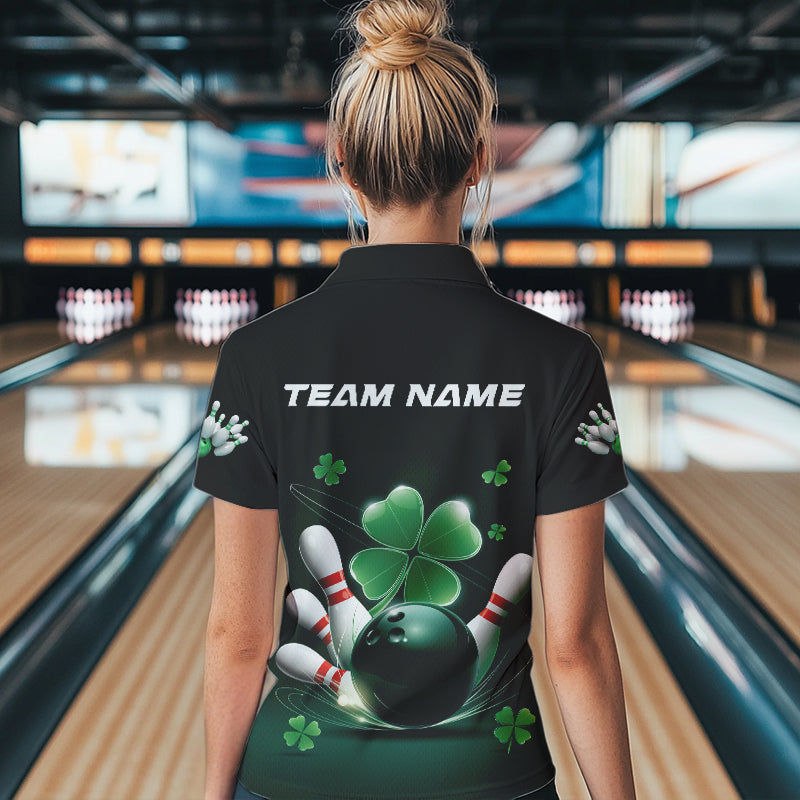 Custom Green Shamprock Saint Patricks Bowling Womens Polo Shirts, Lucky Bowling Team Shirt IPHW8571