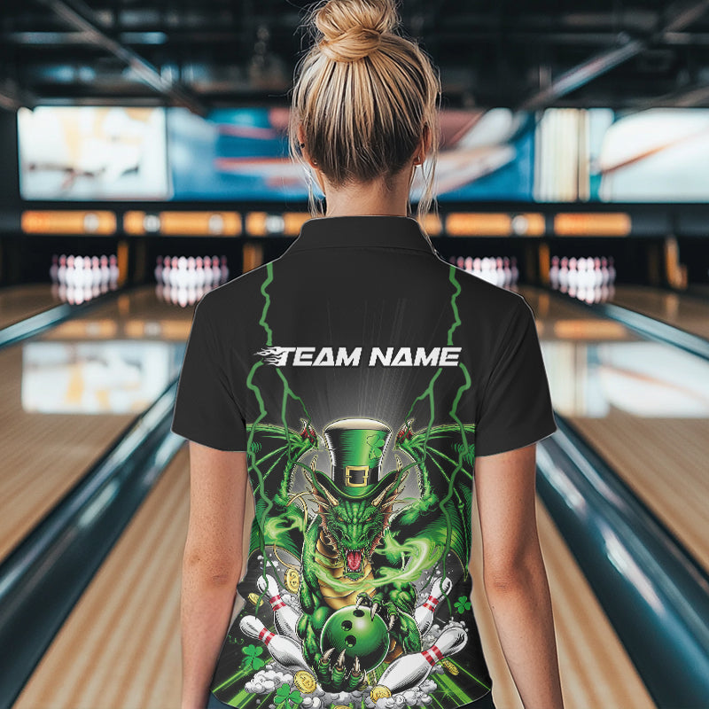 Custom Black And Green St Patricks Dragon Bowling Womens Polo Shirt, Lucky Dragon Bowling IPHW8609