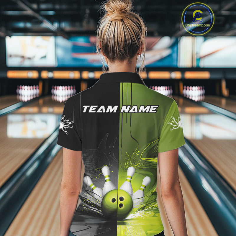 Half Black Half Green Custom Bowling Team Polo Shirts For Women, Bowling Tournament Shirt IPHW9445