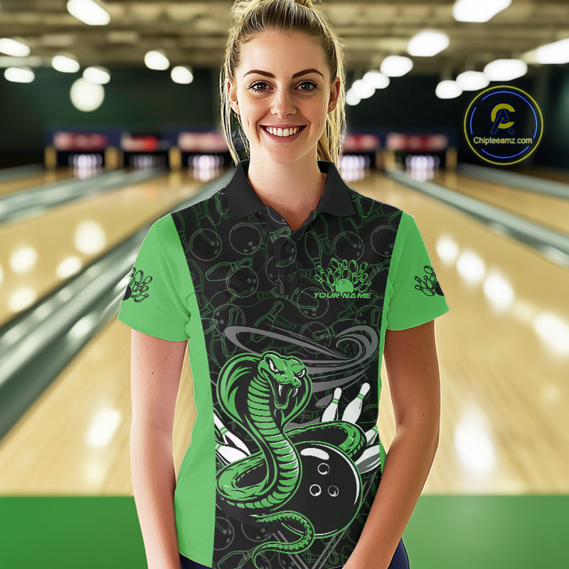 Custom Green Cobra Snake Bowling Team Women Polo Shirts, Bowling Pattern Shirt IPHW9704