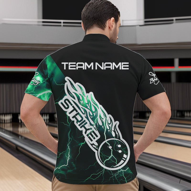 Custom Black And Green Thunder Lightning Strike Bowling Quarter-Zip Shirts For Men Team Shirt IPHW8534