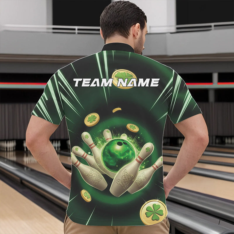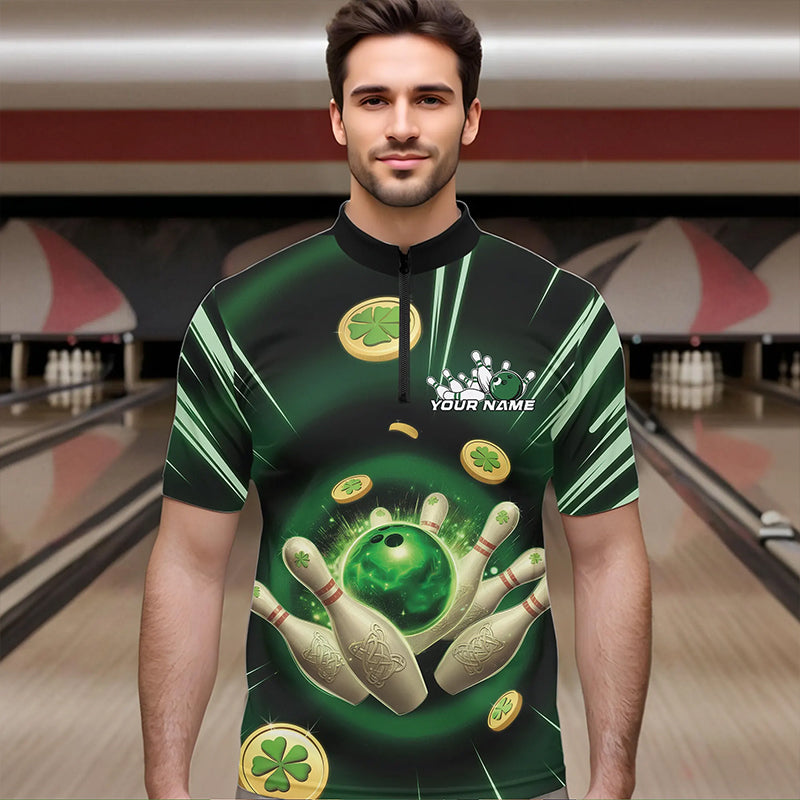Custom Lucky Strike Saint Patricks Bowling Quarter-Zip Team Shirts For Men, Green Bowling Shirt IPHW8583