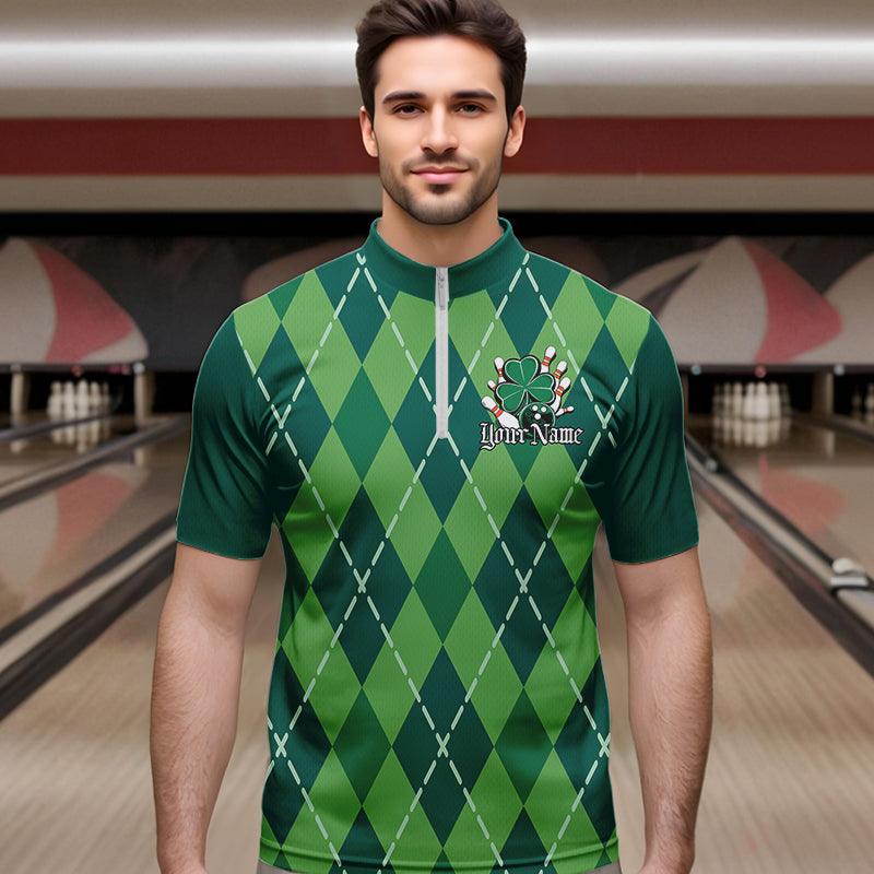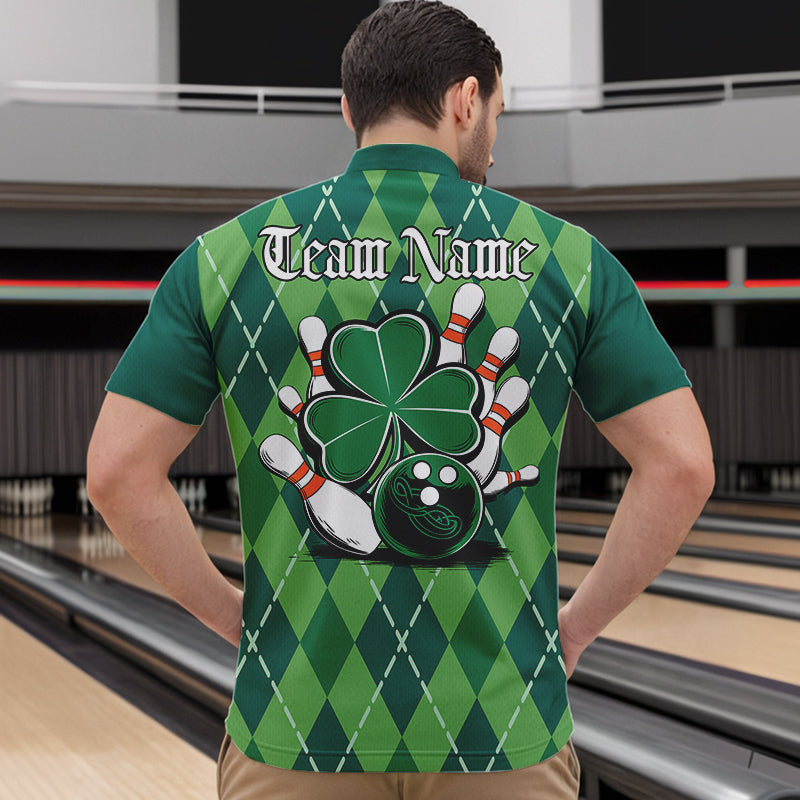 Custom Green Shamprock Saint Patricks Bowling Quarter-Zip Shirts For Men, Lucky Bowling Team Shirt IPHW8598