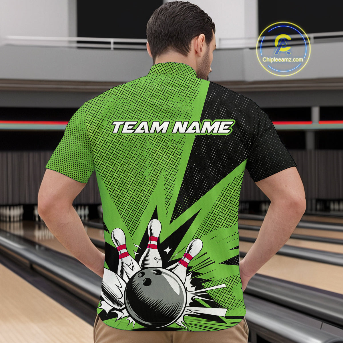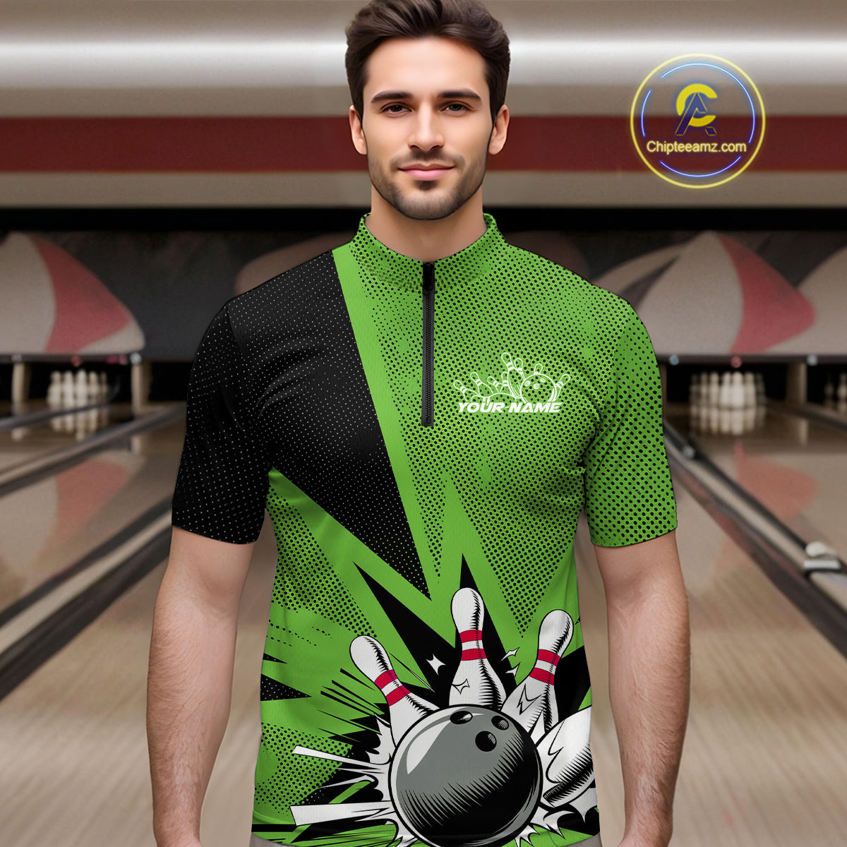 Custom Green Bowling Jerseys, Bowling Team Men Quarter-Zip Shirts Bowling League Shirt IPHW9392