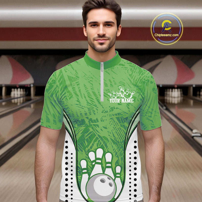 Custom Green Camo Bowling Team Quarter-Zip Shirts For Men, Bowling Jerseys Bowler Outfit IPHW9597