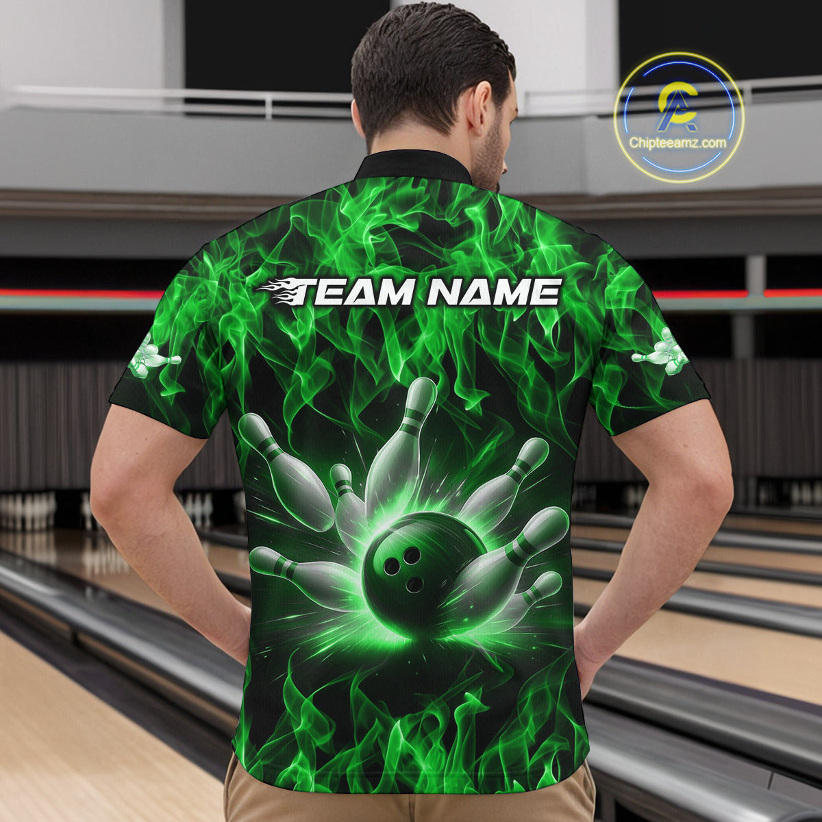 Custom Black And Green Flame Bowling Team Men Quarter-Zip Shirts, Bowling Tournament Shirt IPHW9755