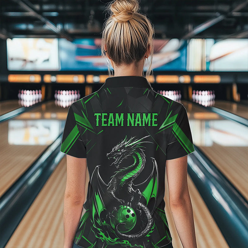 Custom Black And Irish Green Dragon Bowling Womens Quarter-Zip Shirts, Bowling Uniform IPHW8641