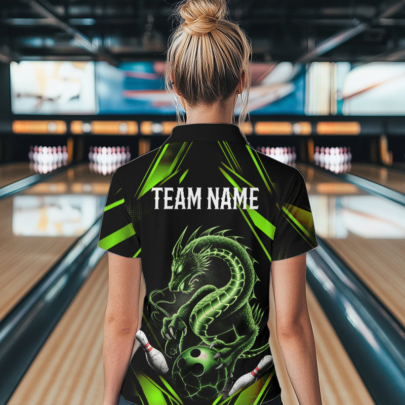 Custom Black And Green Dragon Womens Bowling Quarter-Zip Shirt, Dragon Bowling League Shirt IPHW8674