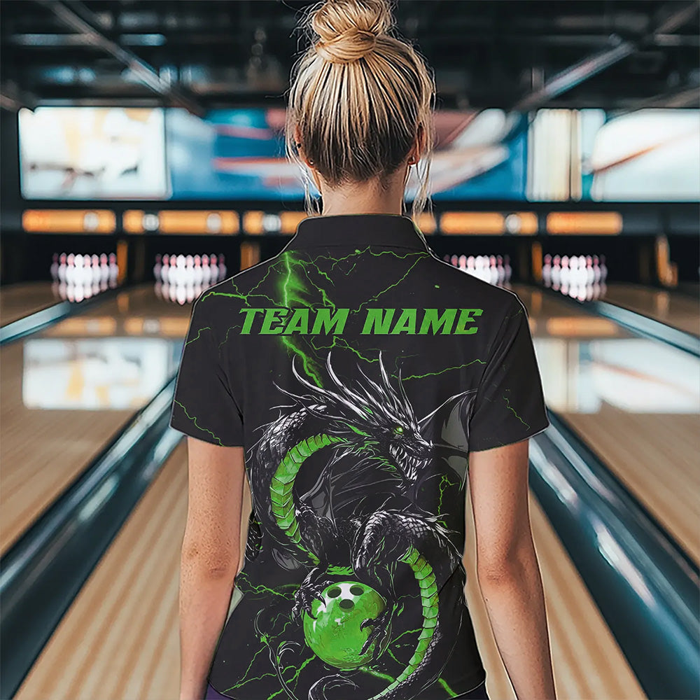 Black And Green Custom Dragon Bowling Womens Quarter-Zip Shirt, Dragon Bowling League Shirt IPHW8689