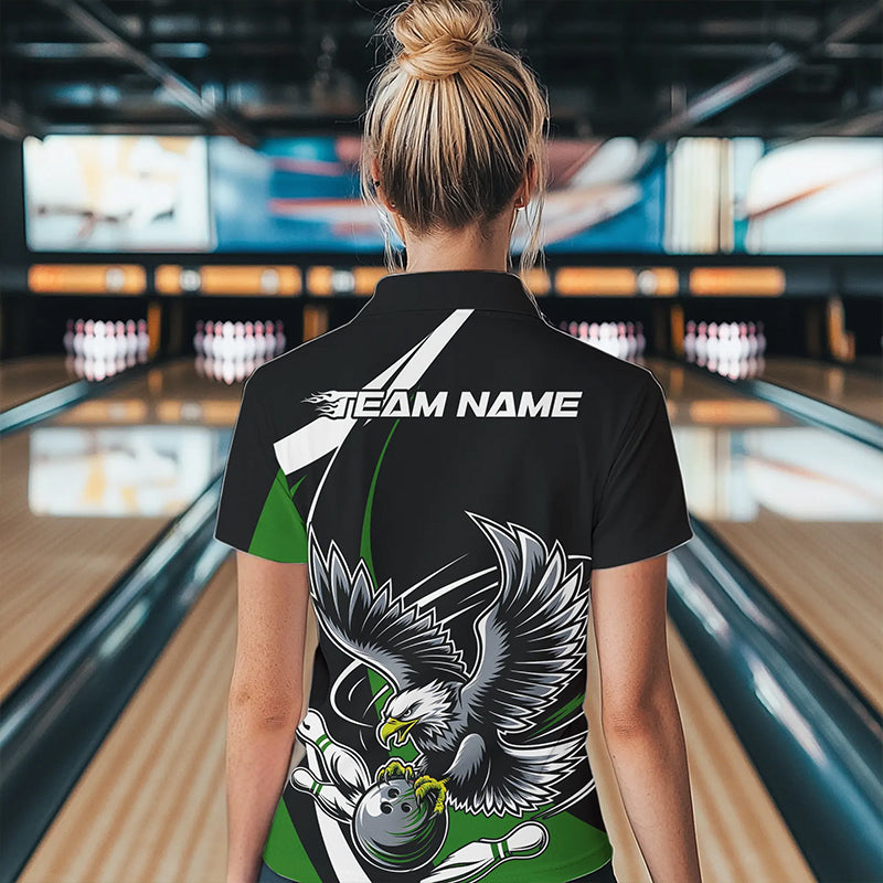 Custom Black And Green Eagle Bowling Women Quarter-Zip Shirts, Eagle Bowling Team Jerseys IPHW8735