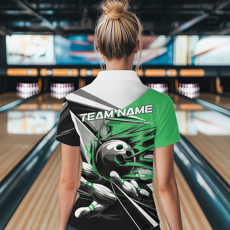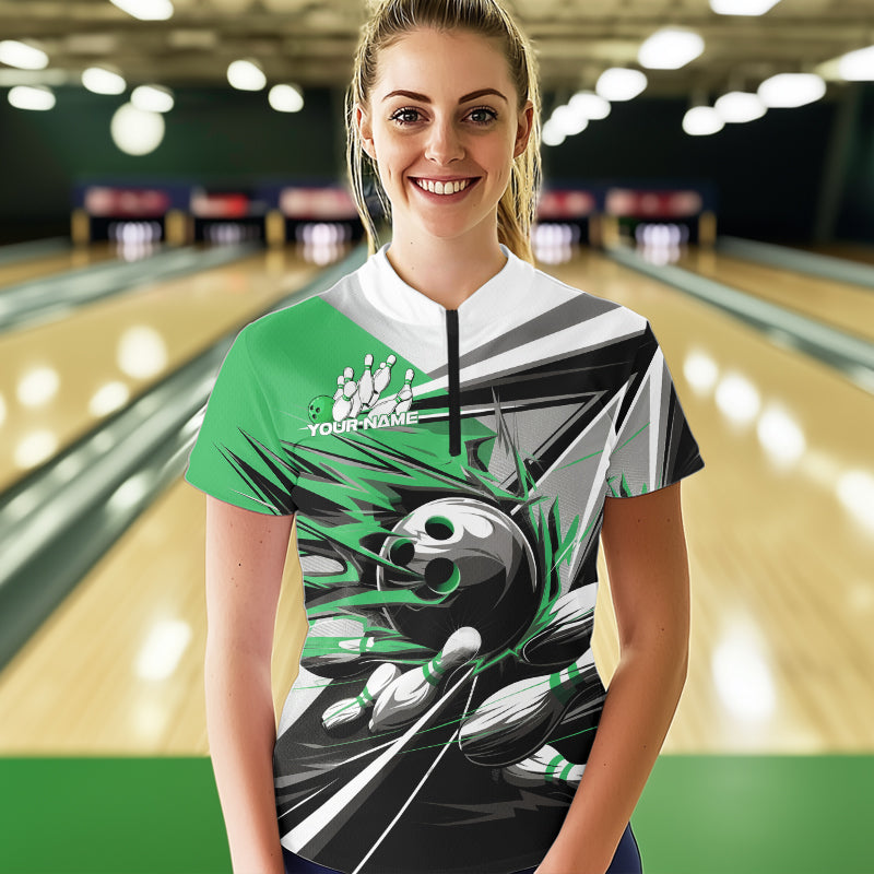 Custom Black And Green Striking Bowling Womens Quarter-Zip Shirts, Team Bowlers Outfits IPHW8767