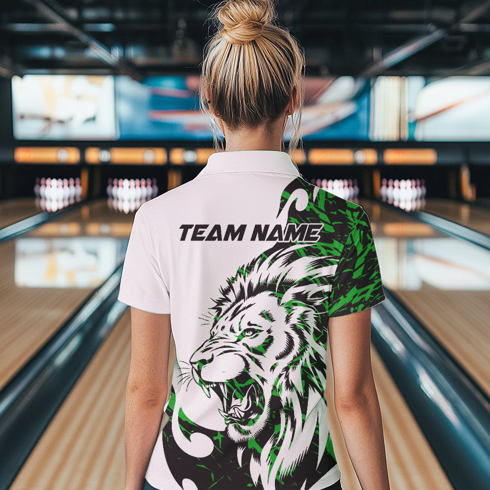Custom Green Camo Lion Bowling Team Quarter-Zip Shirts For Women, Lion Bowling League Shirt IPHW8857