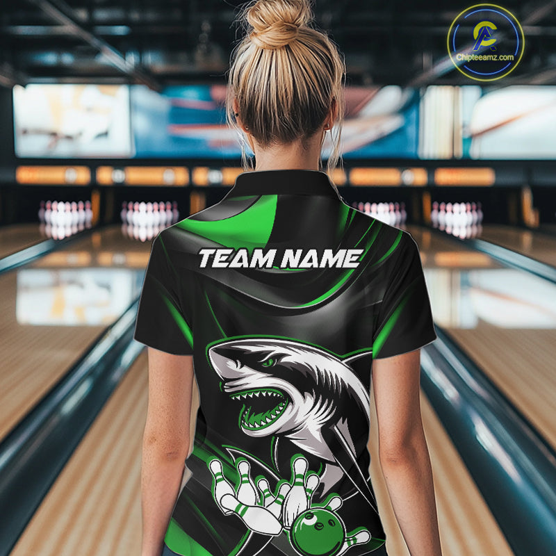 Custom Black And Green Shark Bowling Team Women Quarter-Zip Shirt, Bowling League Shirt IPHW9004
