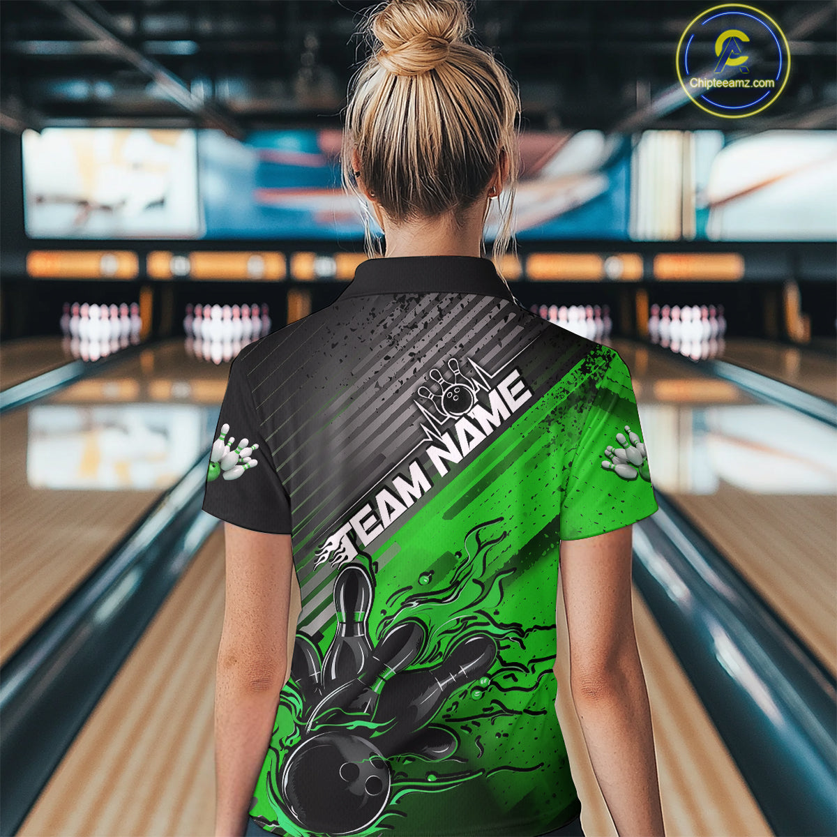 Custom Green Strike Flame Bowling Women Quarter Zip Shirt, Team Shirt Bowlers Outift IPHW9616