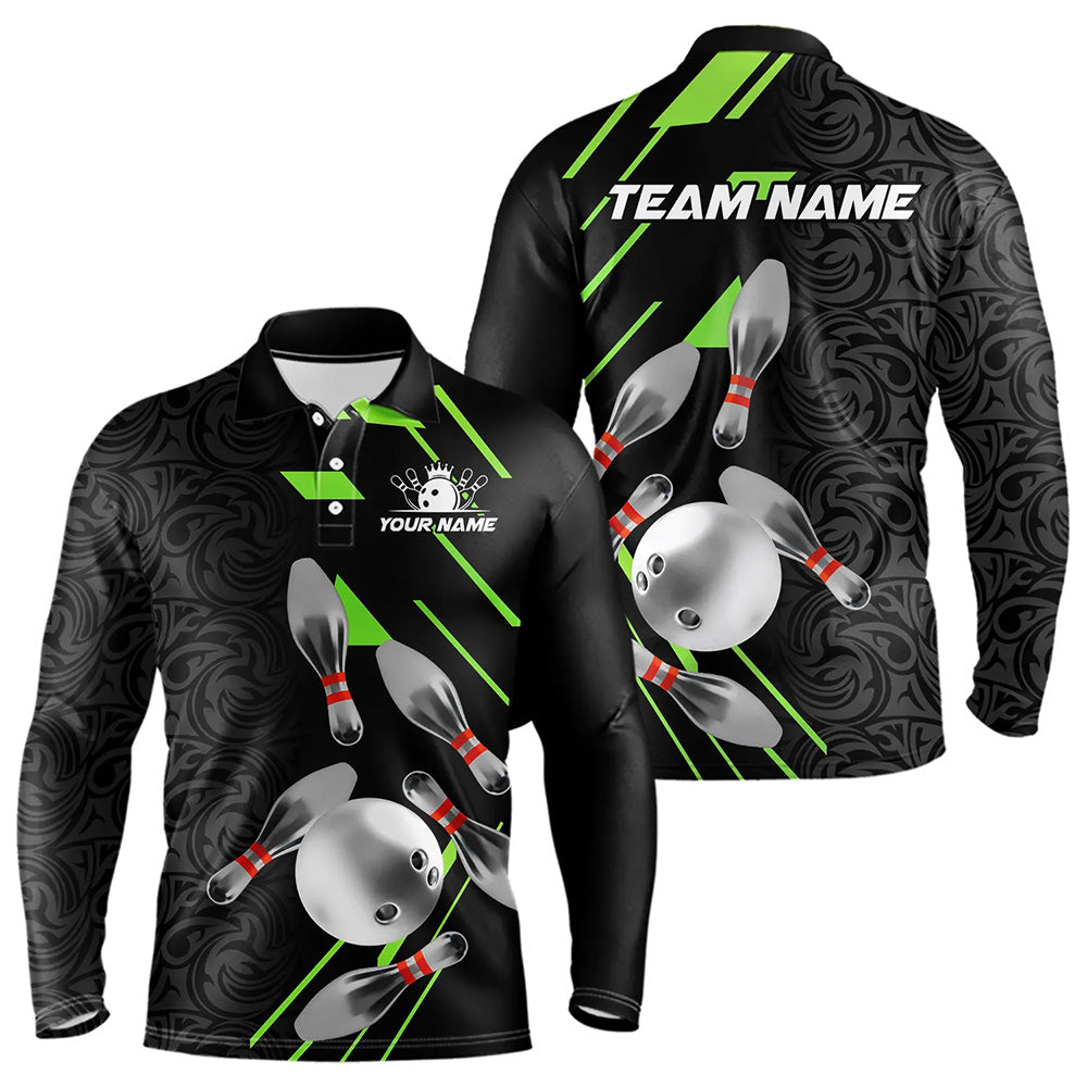 Silver Bowling Ball pins Team bowling shirts for Men custom bowling Polo, Quarter zip jersey | Green NQS9628