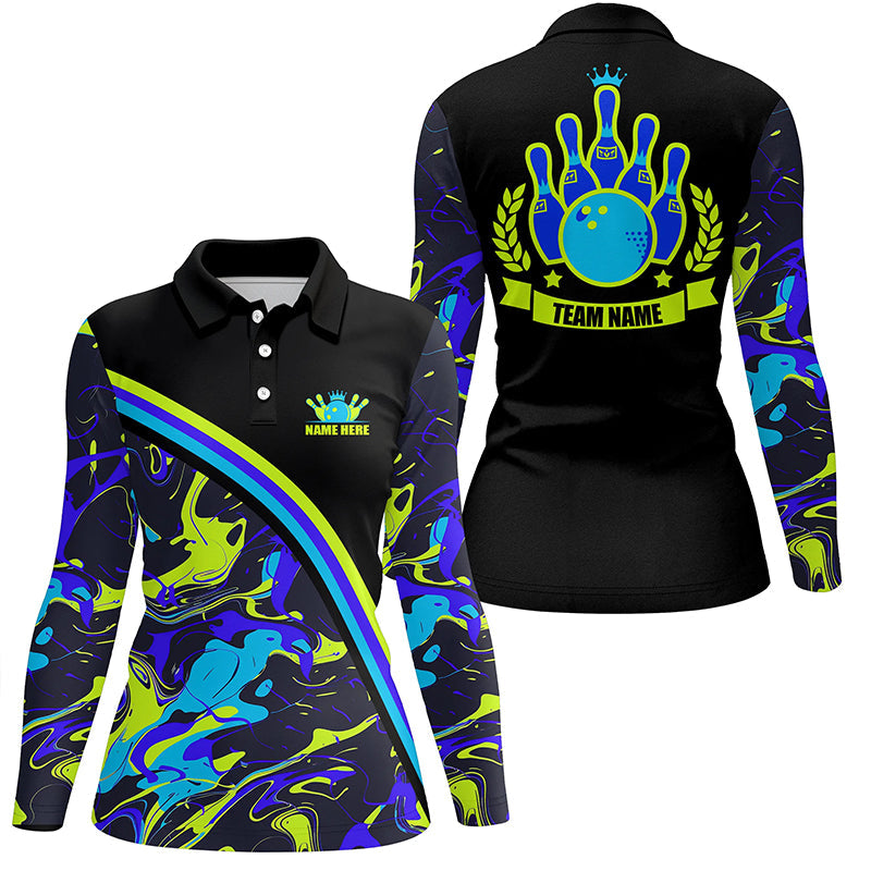 Women bowling polo shirts Custom green and blue bowling camo pattern black Team league Jerseys NQS7333