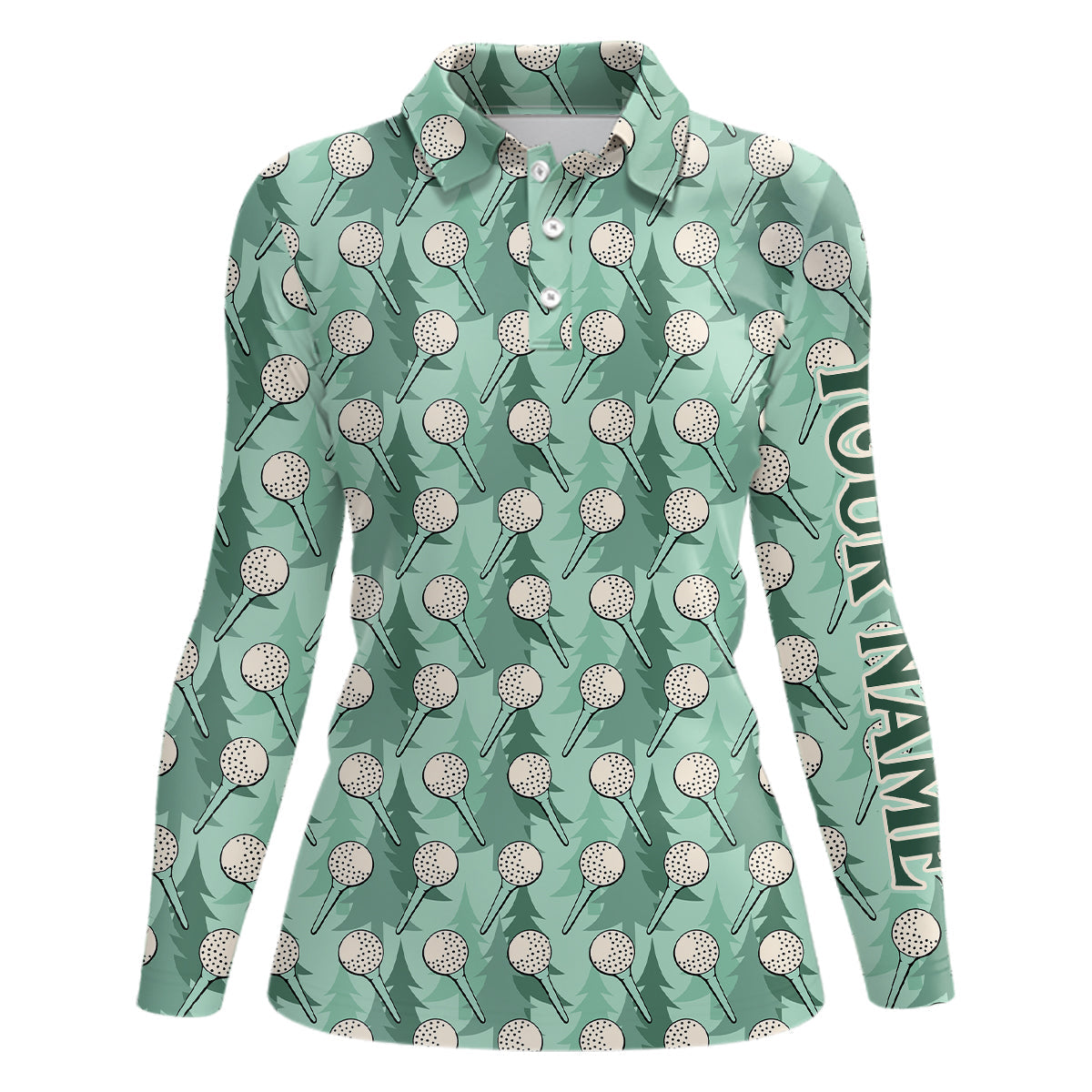 Womens golf polo shirts custom name green pine tree golf tees pattern, golf outfits for ladies NQS6866
