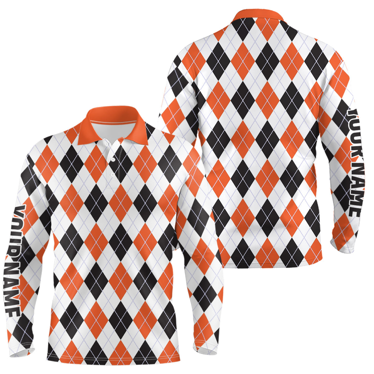 Mens golf polo shirts custom argyle plaid Halloween pattern golf attire for men, unique golf gifts NQS6248