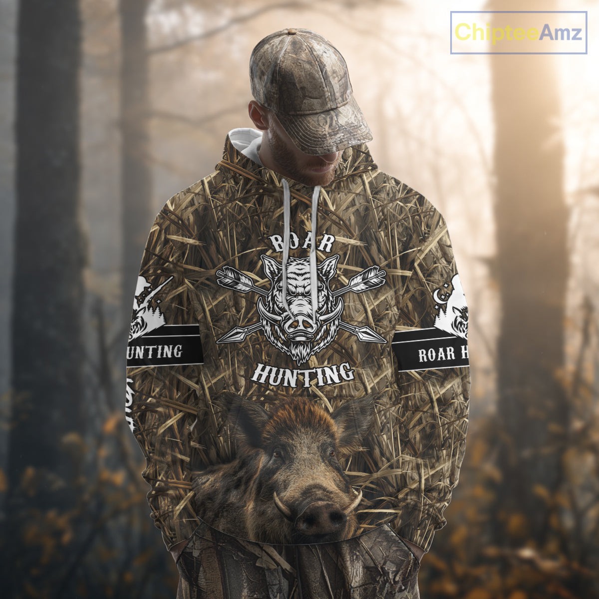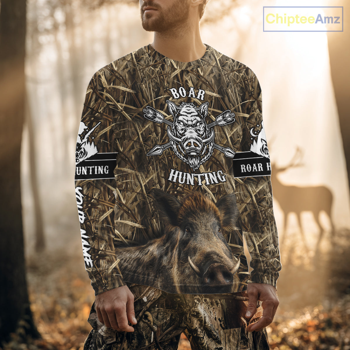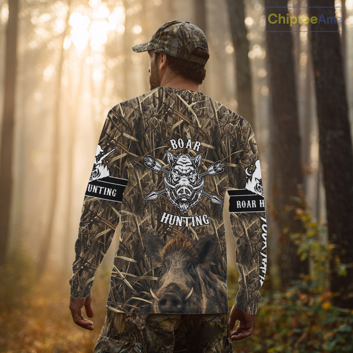 Personalized Wild Boar Hunting Camouflage Customize Name 3D All Over Printed Boar Hunting Shirts NBT104