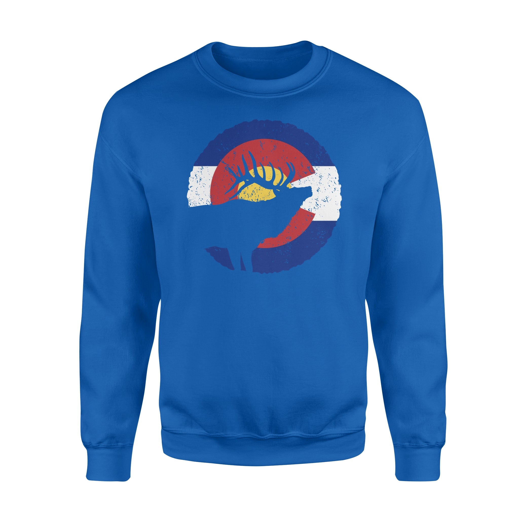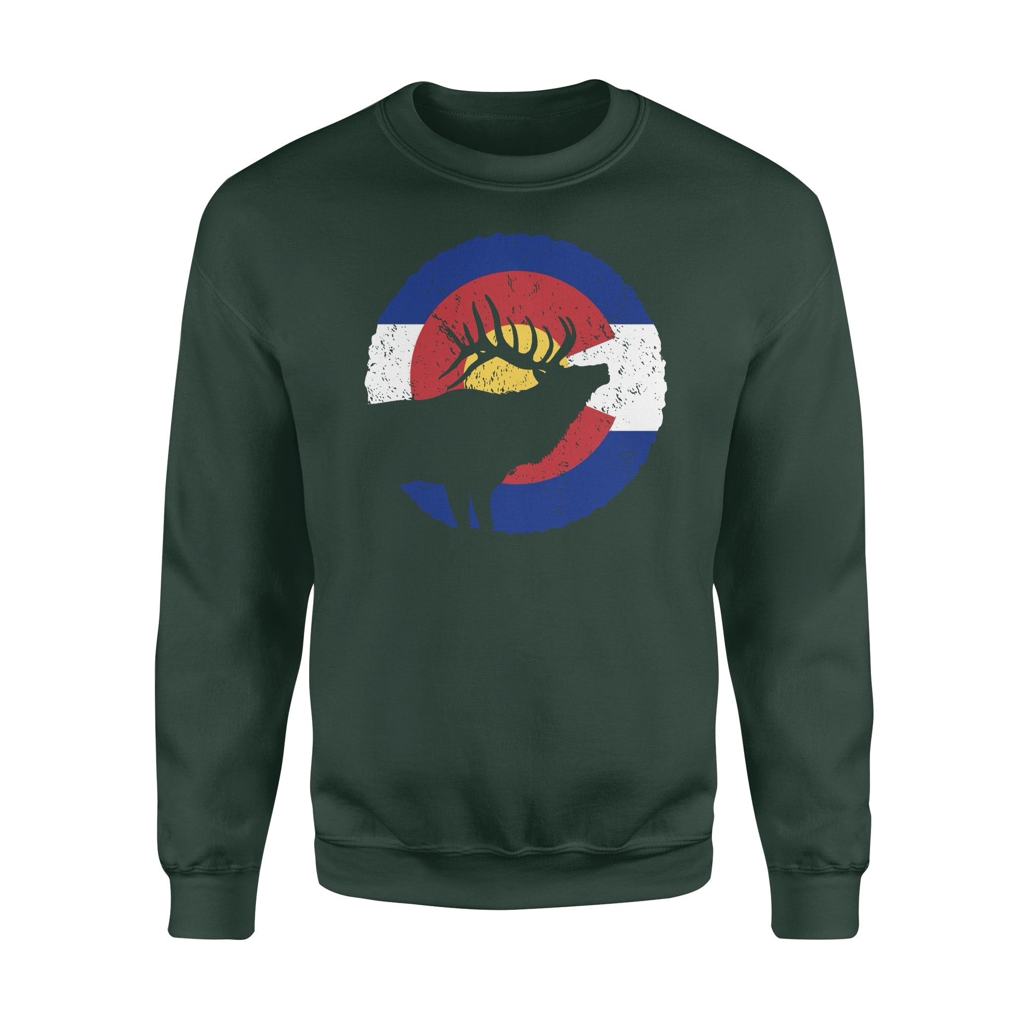 Colorado Elk Hunting Sweatshirt, CO State Flag Hunter - NQSD232