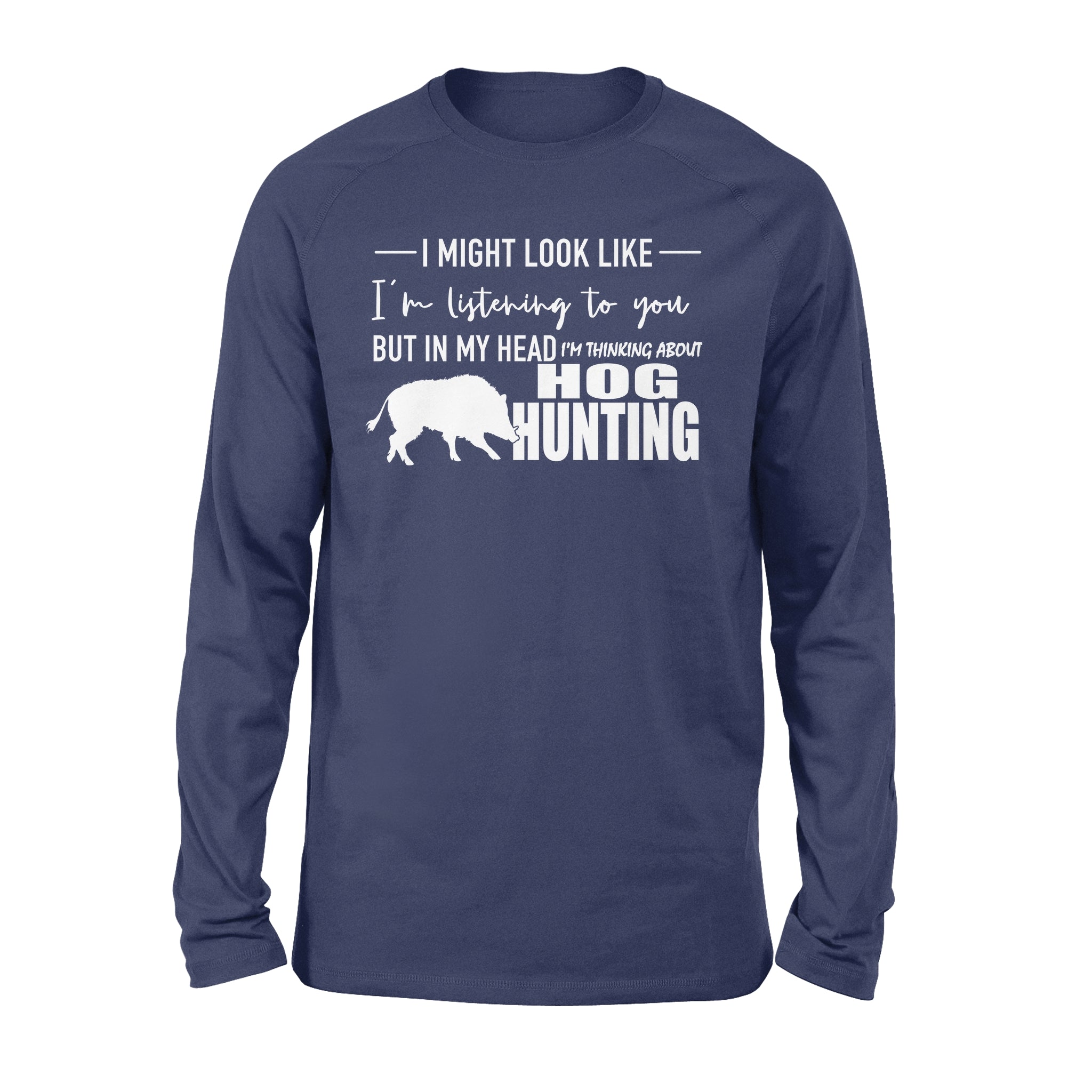 Funny Hog hunting shirt "I might look like I'm listening to you but in my head I'm thinking about hog hunting" long sleeve JAN21 FSD1254D08