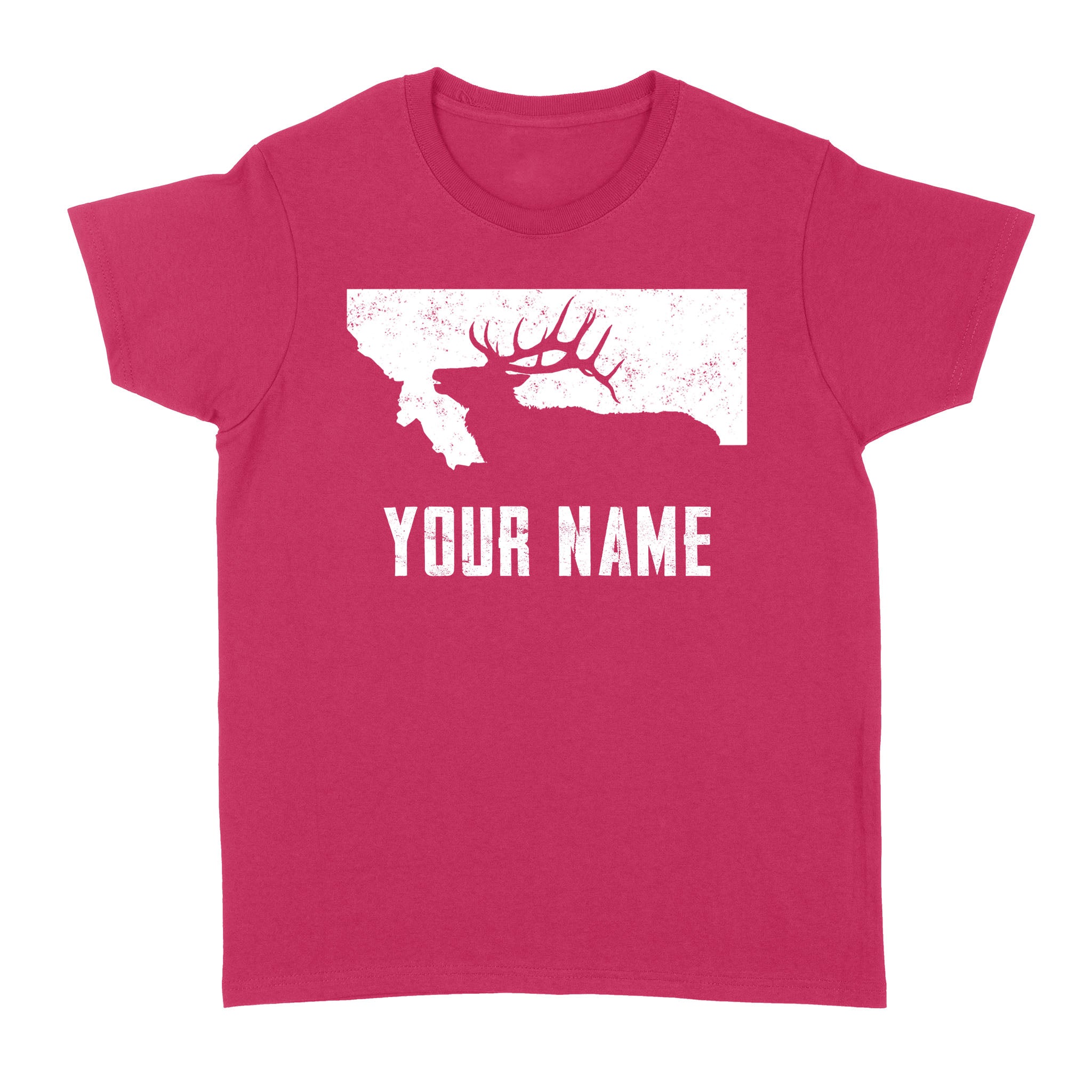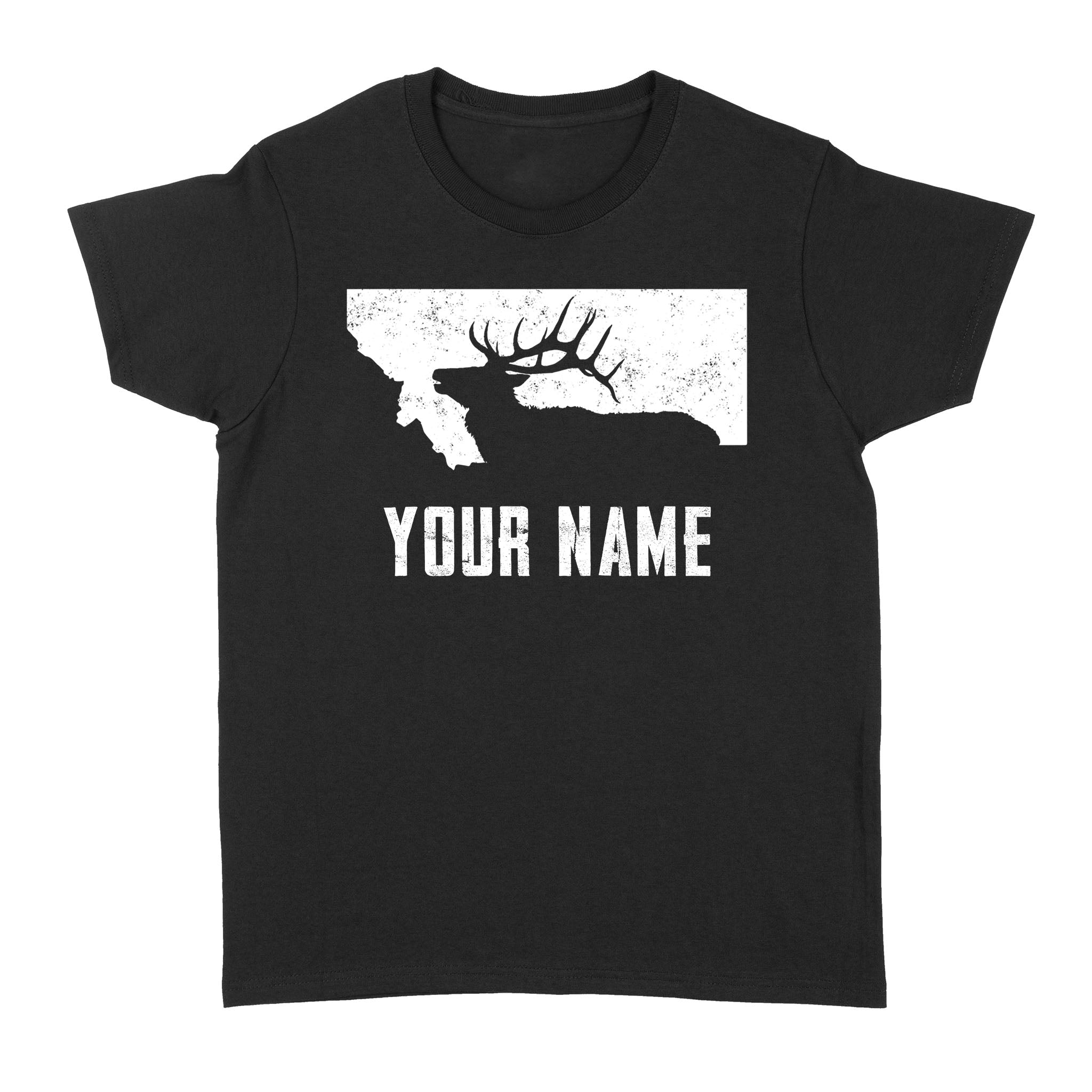 Montana Elk Hunting Custom Name Shirt Bull Elk MT State Shape Standard Women's T-shirt FSD1808D05