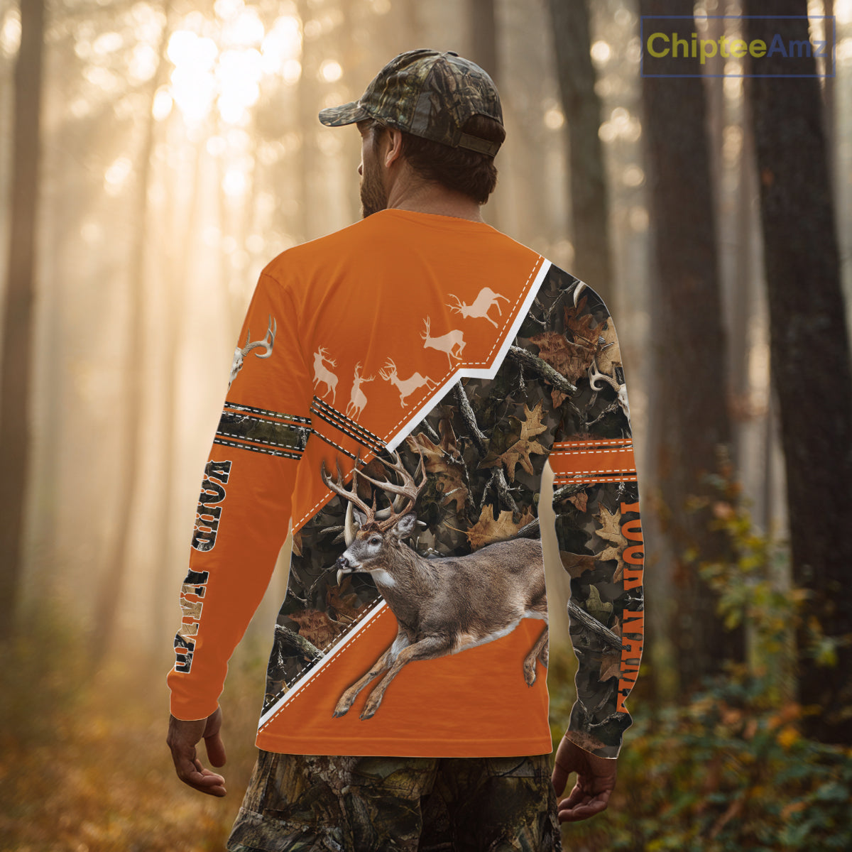 Deer Hunting Big Game Orange Camo Forest Custom Name 3D All Over Print Shirts, Hunting Shirt NHT158