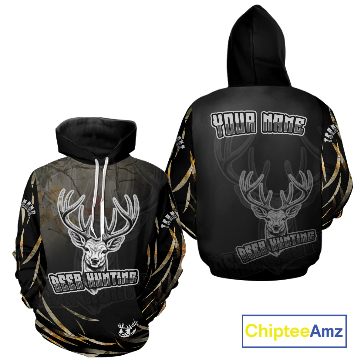 Personalized Deer Hunting Hoodie/ Long sleeves Shirts. Designed for deer hunters and outdoor enthusiasts, this shirt blends style, comfort, and funtionality in one. The unique hunting-inspired design can be personalized with your name, along with details like the American flag, camouflage patterns, and more - making it the perfect gift ideas for hunters during deer hunting season.