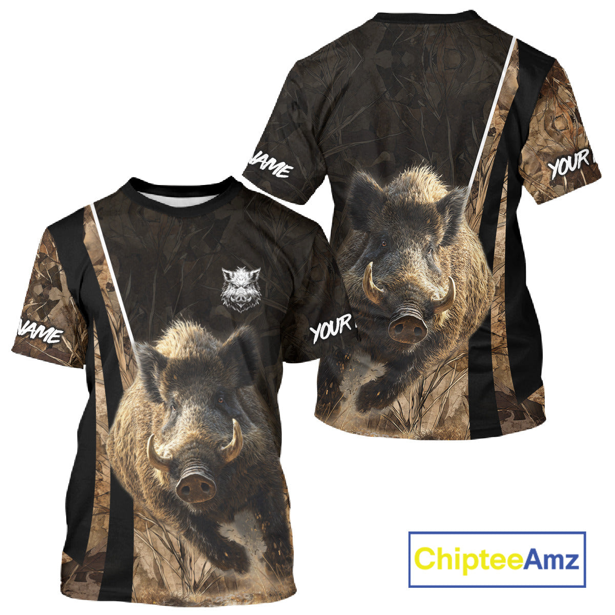 Best Custom Wild Boar Hunting Black Camo Forest 3D Printed Shirts, Hunting Gifts NHT284