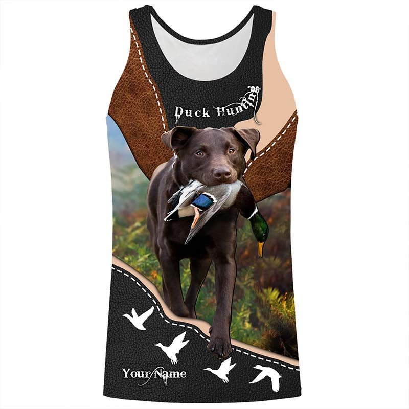 Chocolate Labs Duck Hunting with dog Custom Name all over print Shirts for Duck Hunters, Hunting gift FSD4107