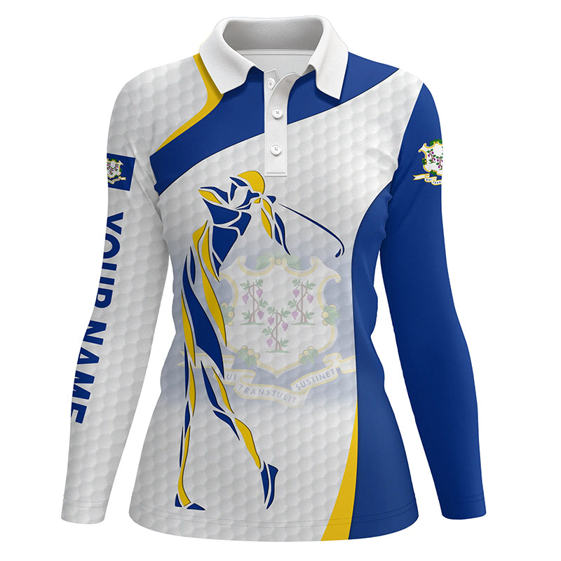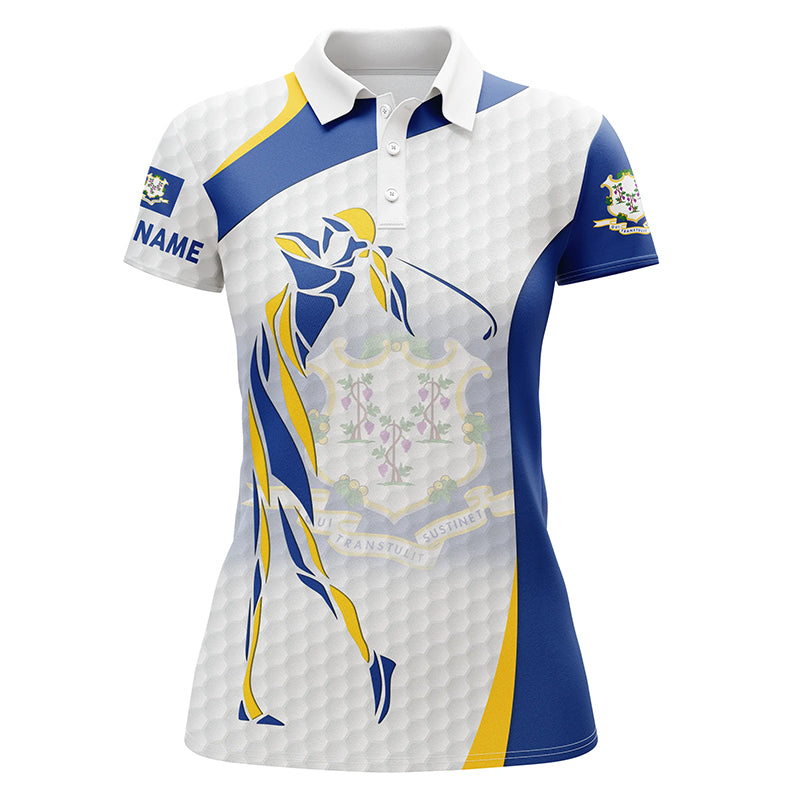 Connecticut Flag Womens golf polo shirt custom patriotic golf outfit women, unique ladies golf apparel NQS7441