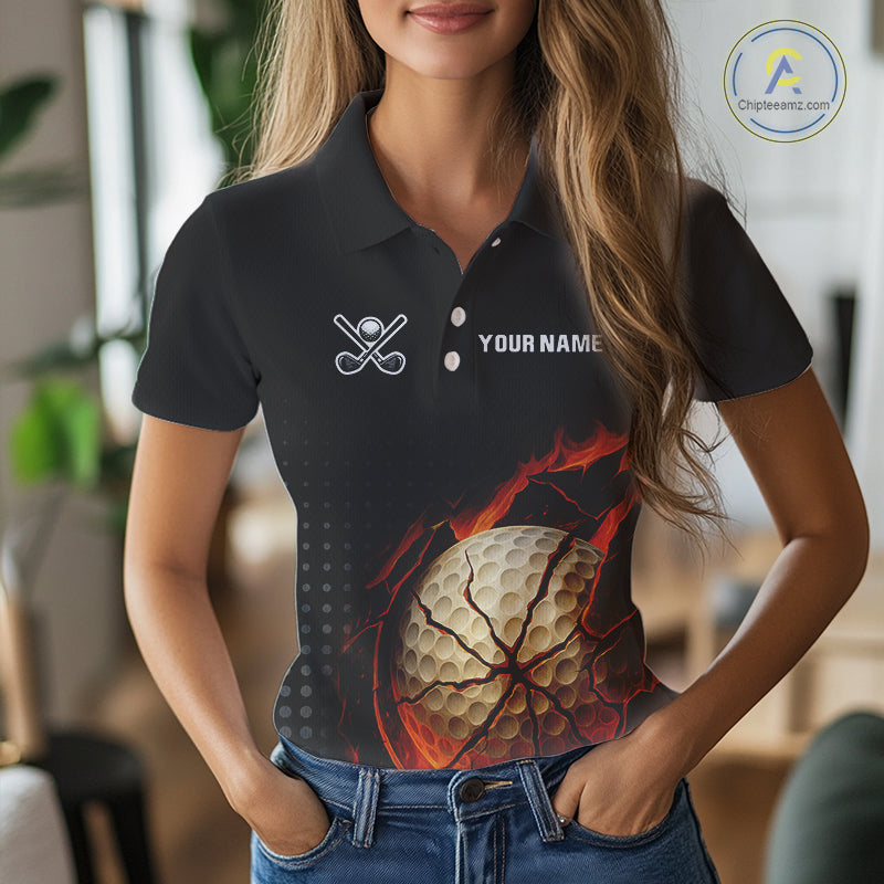 Flame Broken Golf Ball Custom Women golf polo shirt, personalized cool golf outfit for ladies NQS10101