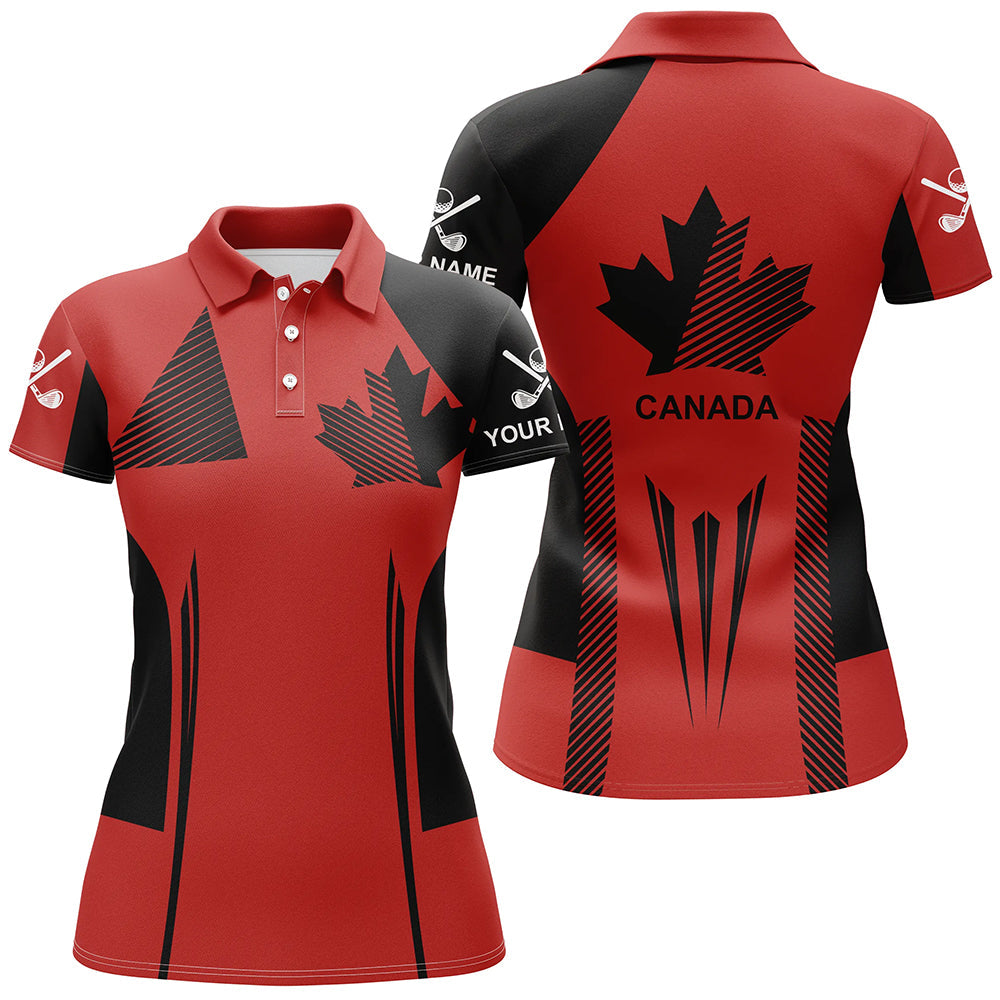 Personalized black and red Canada flag golf polo shirt for women custom patriotic gifts for golf lover NQS7754