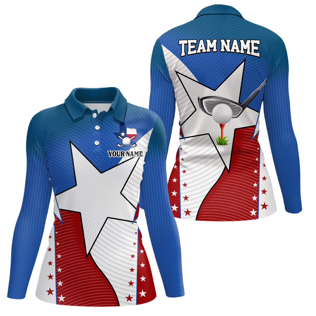 Texas flag retro Women golf polo shirt custom golf apparel for ladies, gifts for golf lovers NQS7400