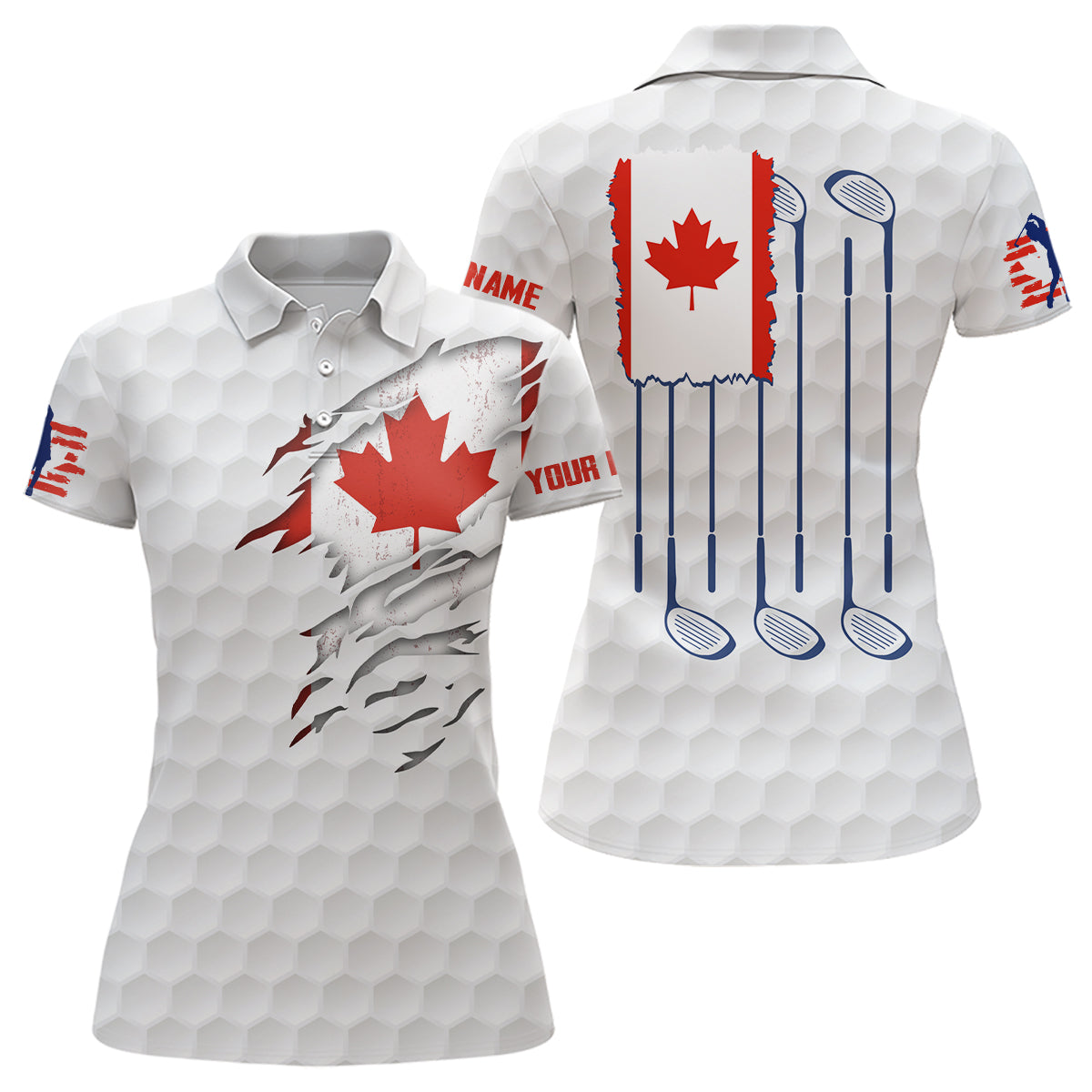 Canada Flag Golf Pattern Polo Shirt Red Maple Leaf Golf Shirts For Women Patriotic Golf Gifts LDT0271