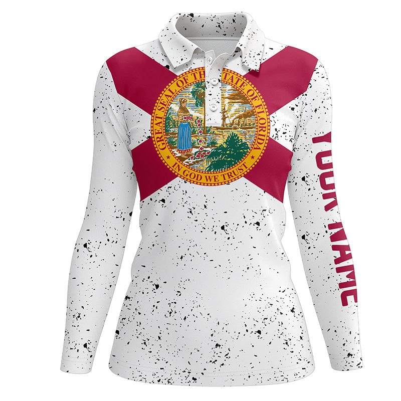 Florida Flag Personalized White Grunge Polo Shirts Patriotic Golf Shirts For Women Golf Gifts LDT0277