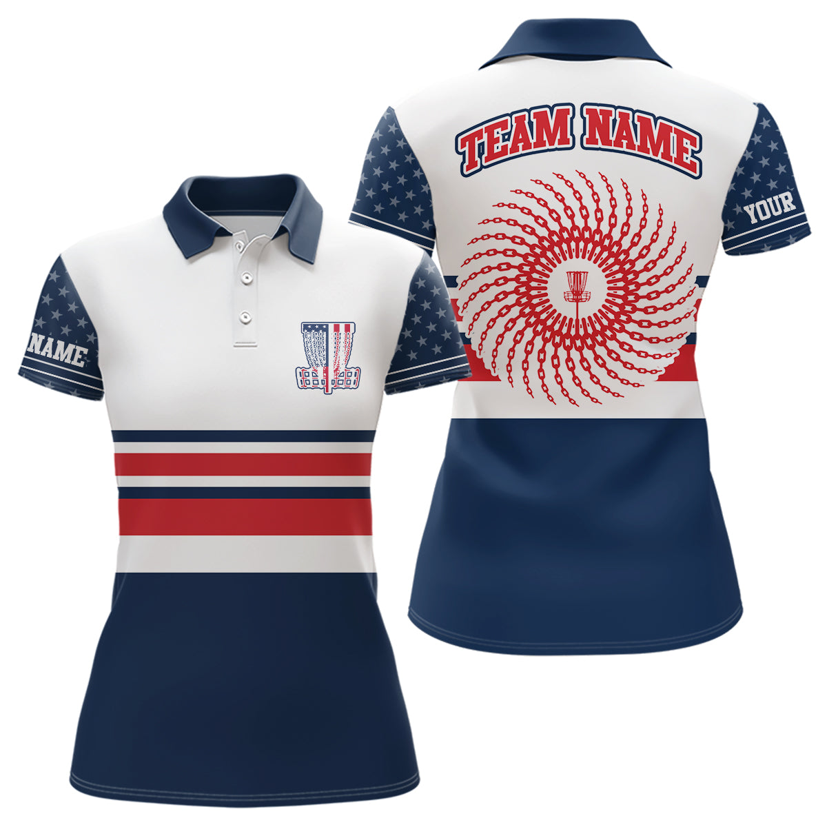 Disc Golf American Flag Womens Polo Shirt Personalized Patriotic Disc Golf Shirts For Women LDT0595