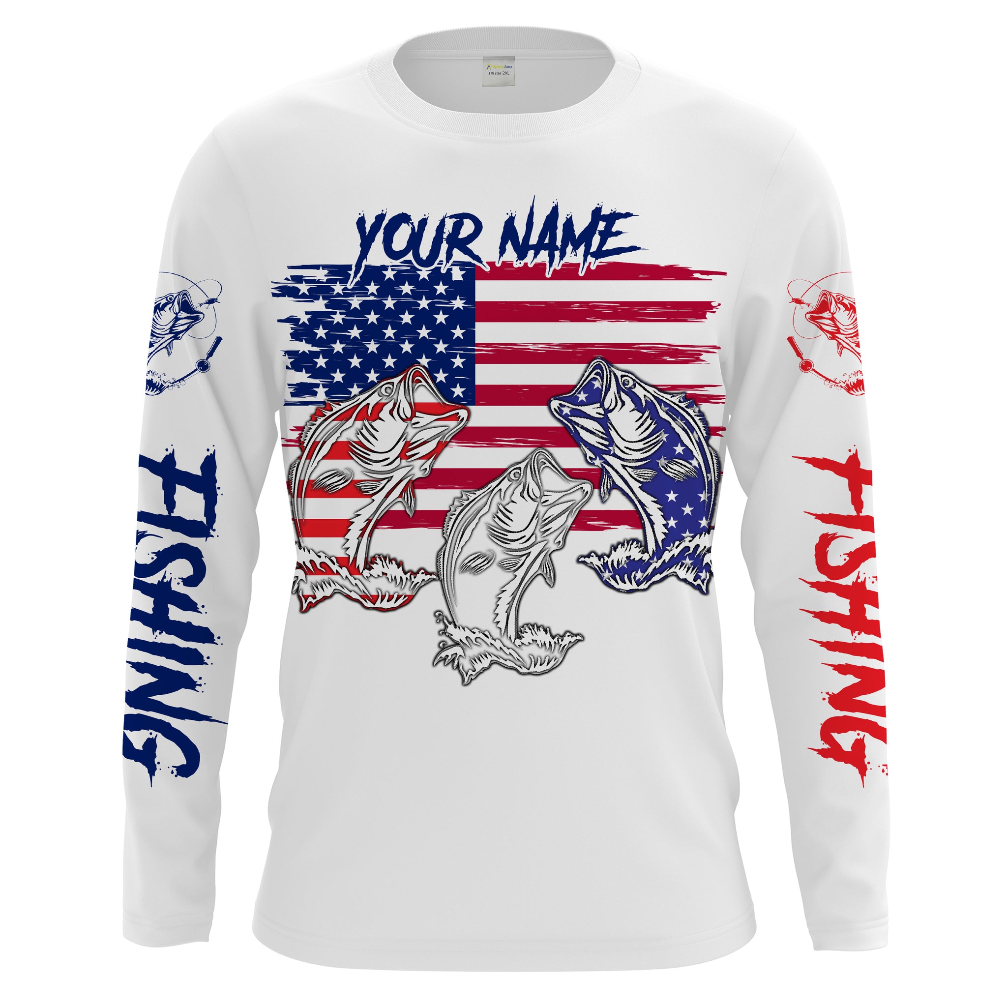 Bass Fishing American flag 4th of July 3D Custom name UV Protection Shirt For Men, Women and Kid Patriotic fishing gift FSD2083