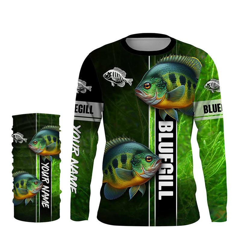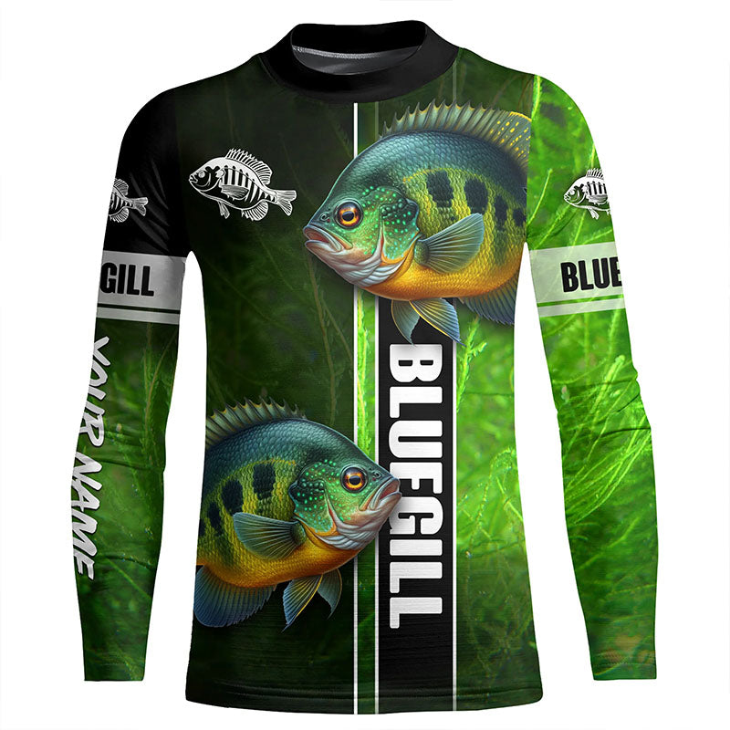 Bluegill fishing green camo shirt Custom Long Sleeve Fishing Shirts, fishing gifts for men, women, kid NQS5807