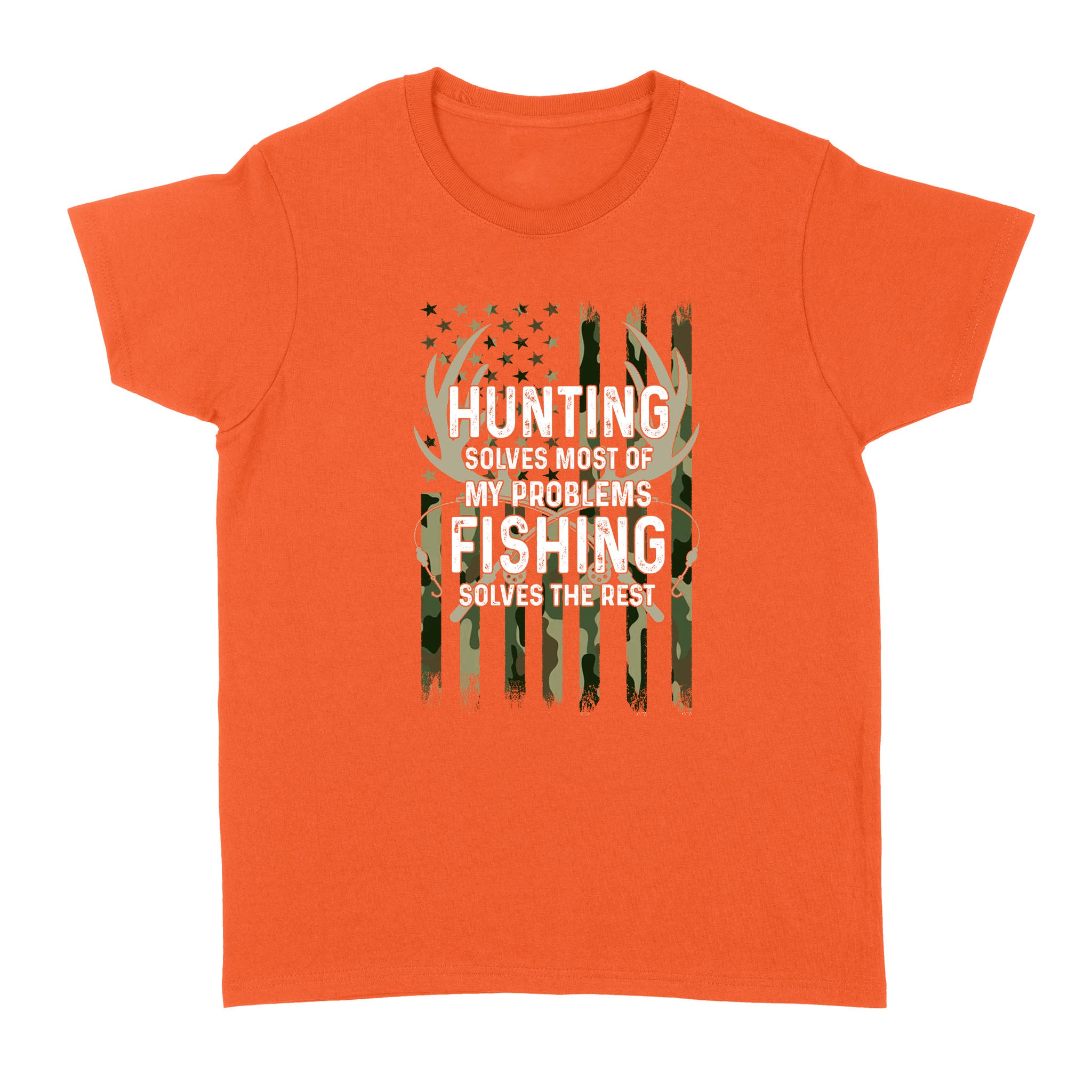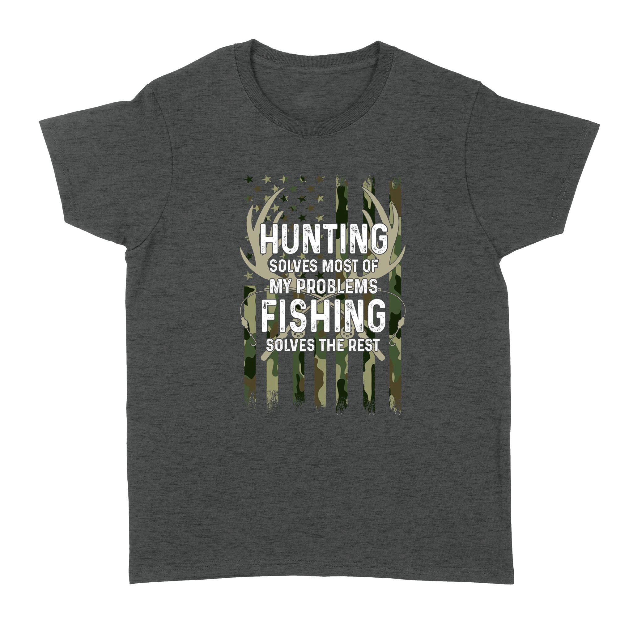 Hunting solves most of my problems, fishing solves the rest camo American flag D01 NQS3034 Women's T-shirt