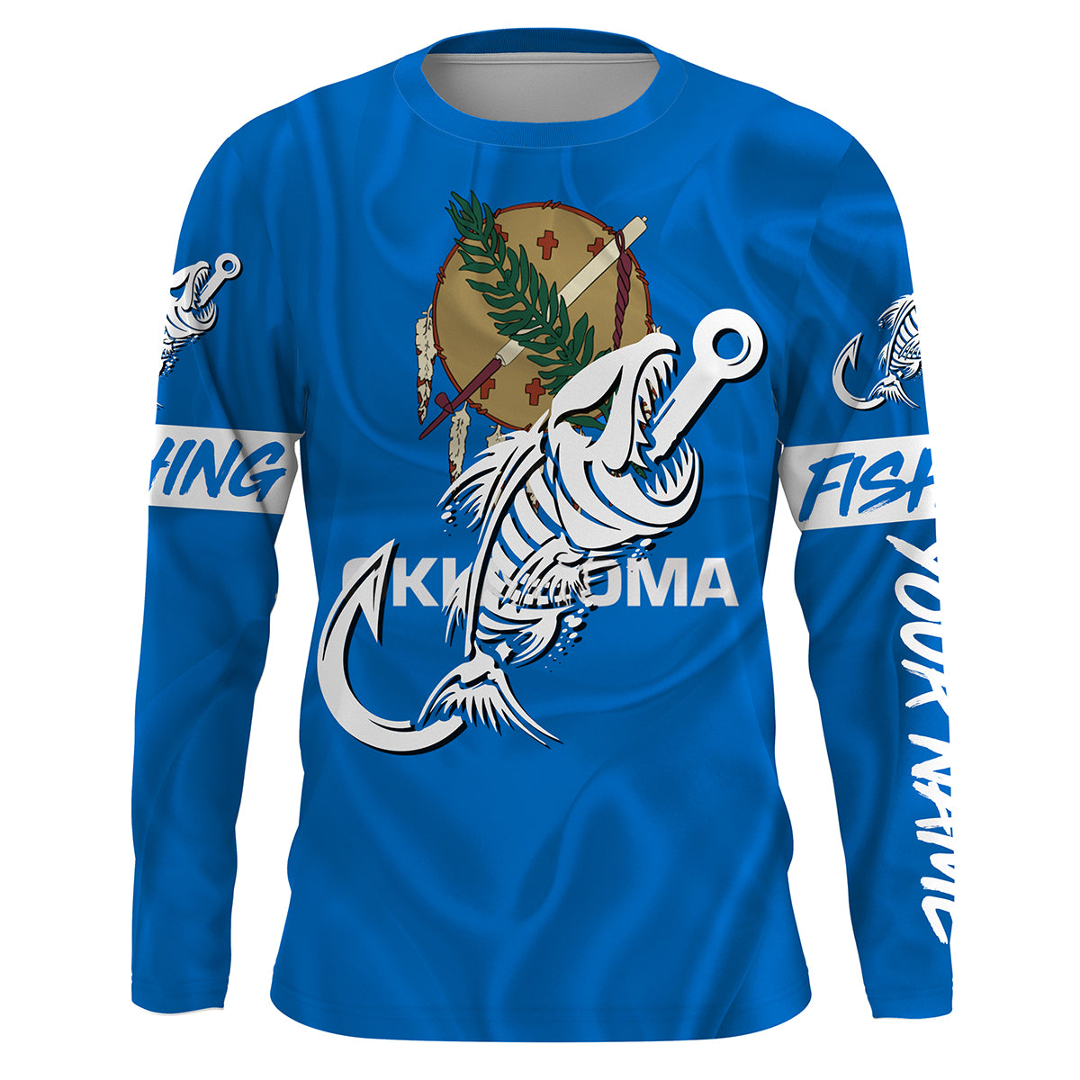 OK Fishing Custom Oklahoma Flag Fish hook skull Custom sun protection fishing shirts for men, women NQS3352