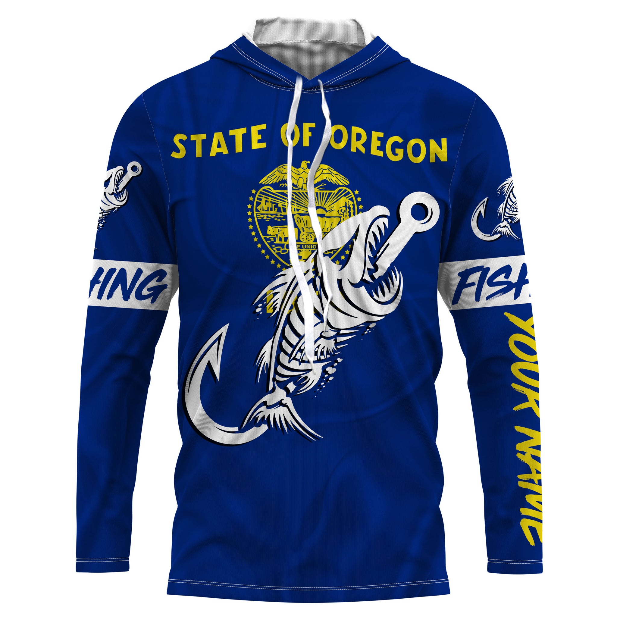 OR Oregon Fishing Flag Fish hook skull Custom sun protection fishing shirts for men, women, kid NQS3403