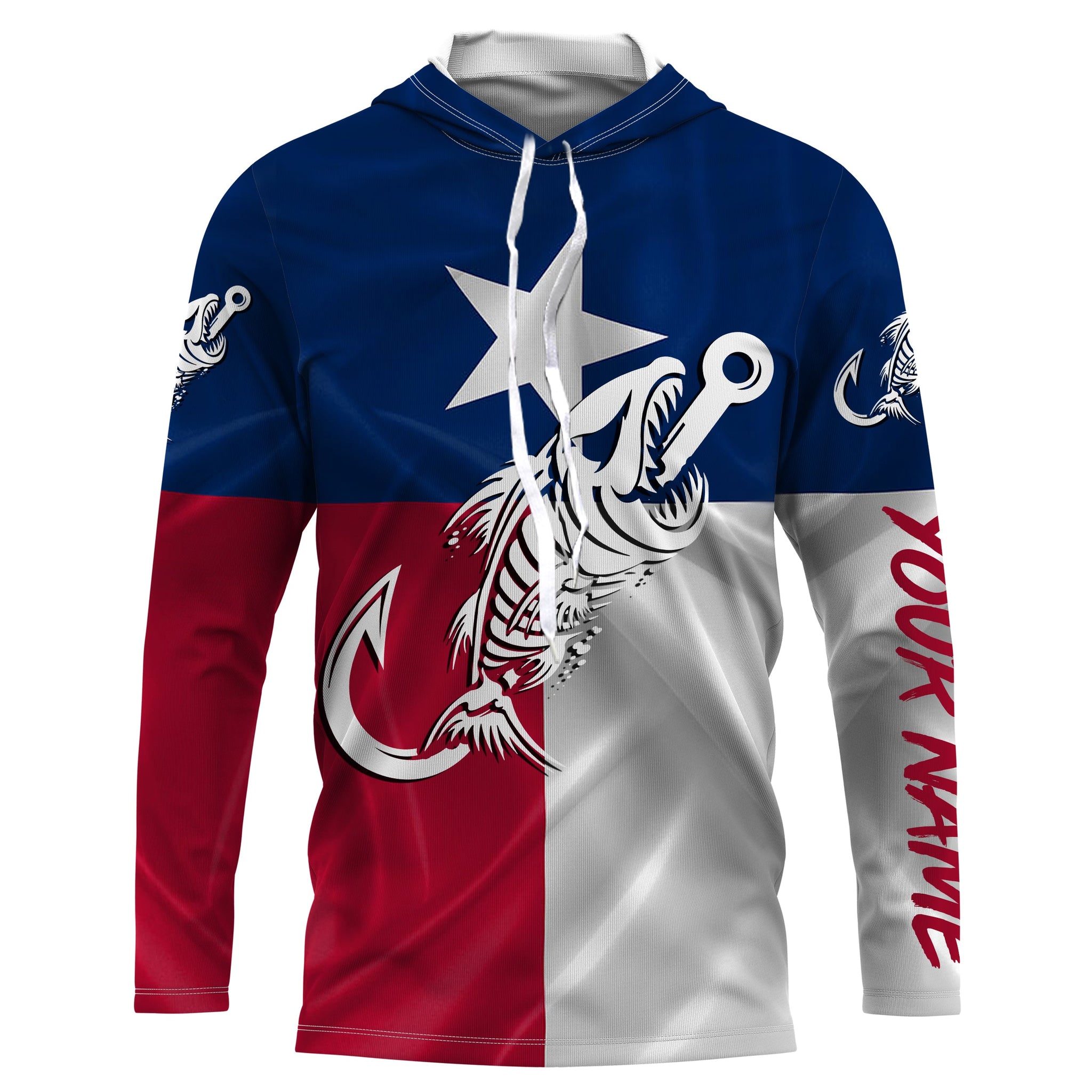 Texas flag fishing Fish hook skull Custom Name sun protection custom fishing shirts for men, women,kid NQS3372