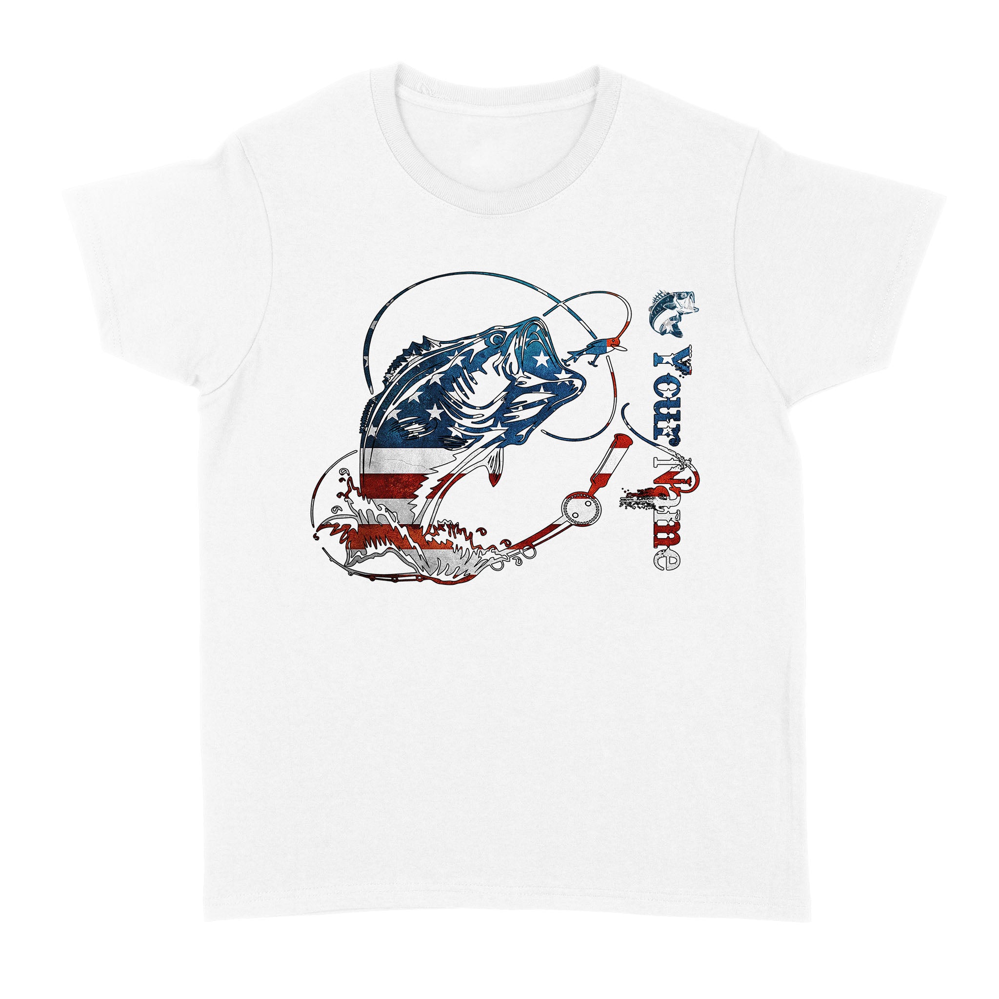 US Bass Fishing American Flag Custom name Women's T-shirt D02 NQS1248