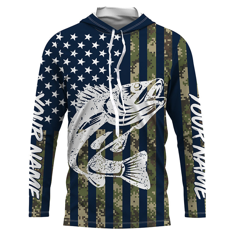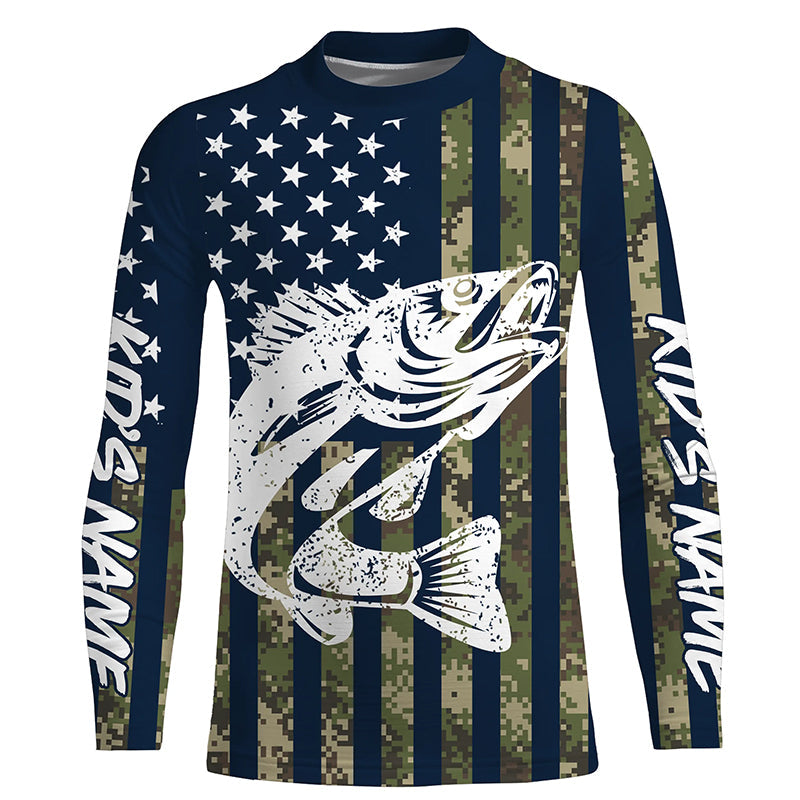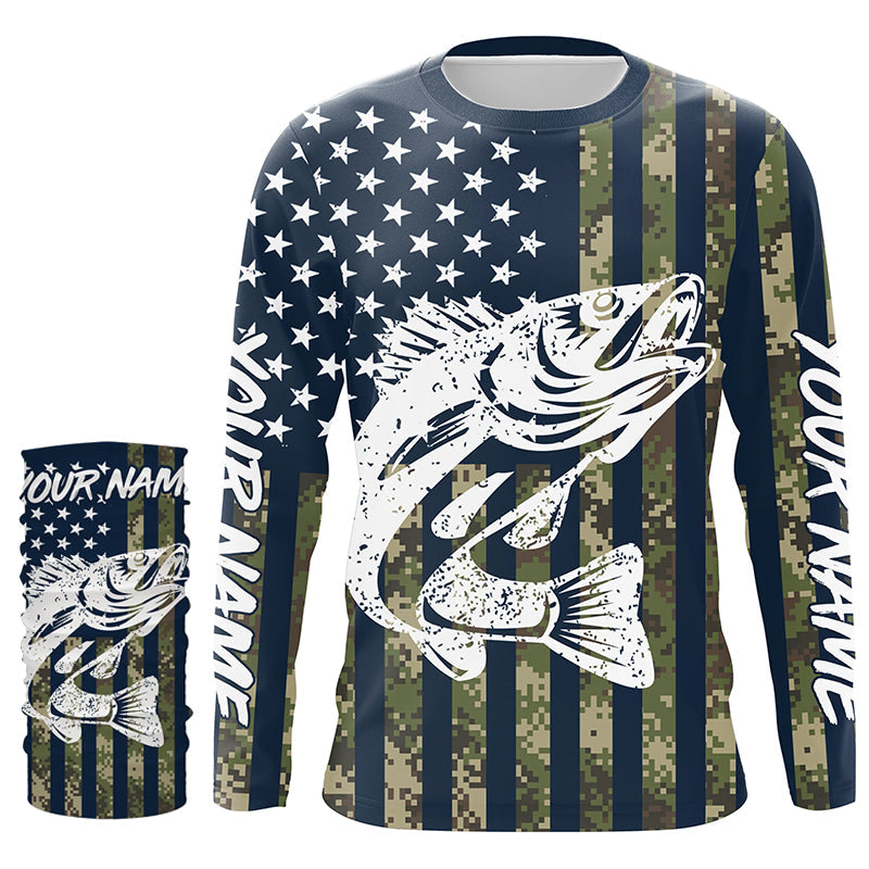 Walleye Fishing American Flag Camo custom performance fishing shirt for Men, Women, Youth/Kids FSD3552