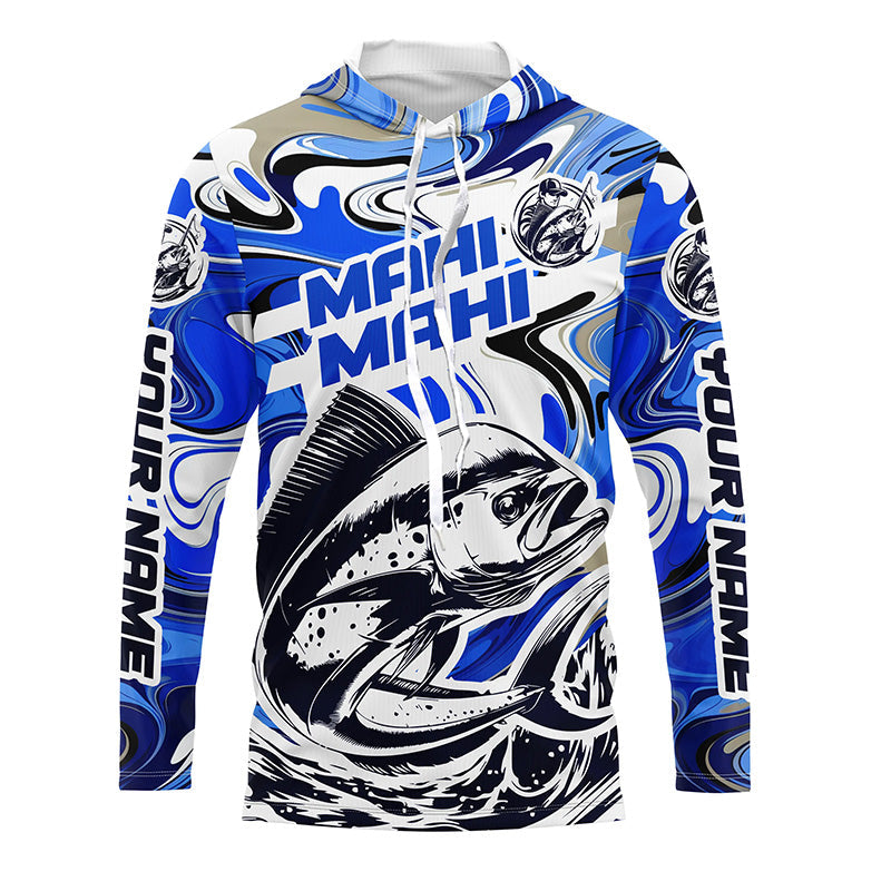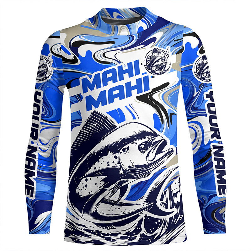 Custom Mahi Mahi Long Sleeve Uv Protection Fishing Shirts, Mahimahi Performance Shirts | Blue Camo IPHW6137