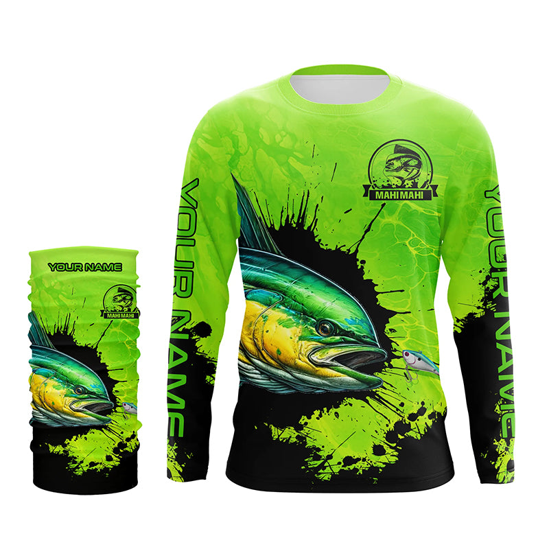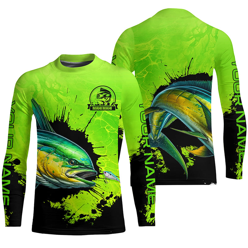 Personalized Mahi mahi fishing Performance long sleeve Fishing Shirt, Dorado fishing jerseys | Green NQS6921