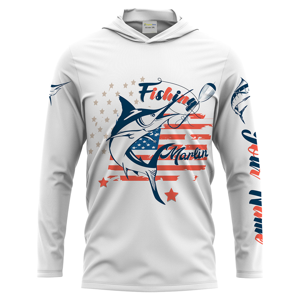 Marlin fishing American flag patriot 4th July Customize name long sleeves UV protection fishing shirts NQS2032